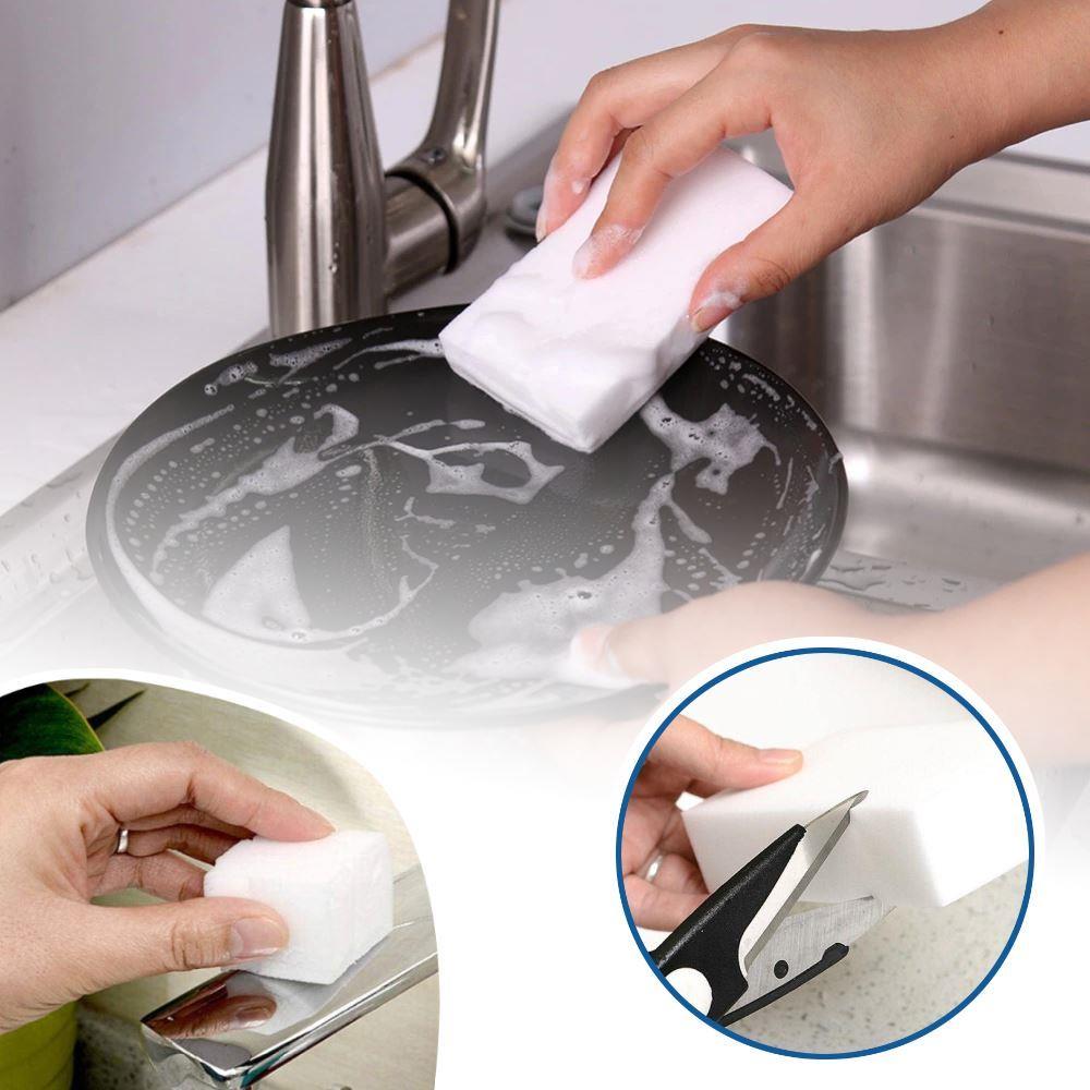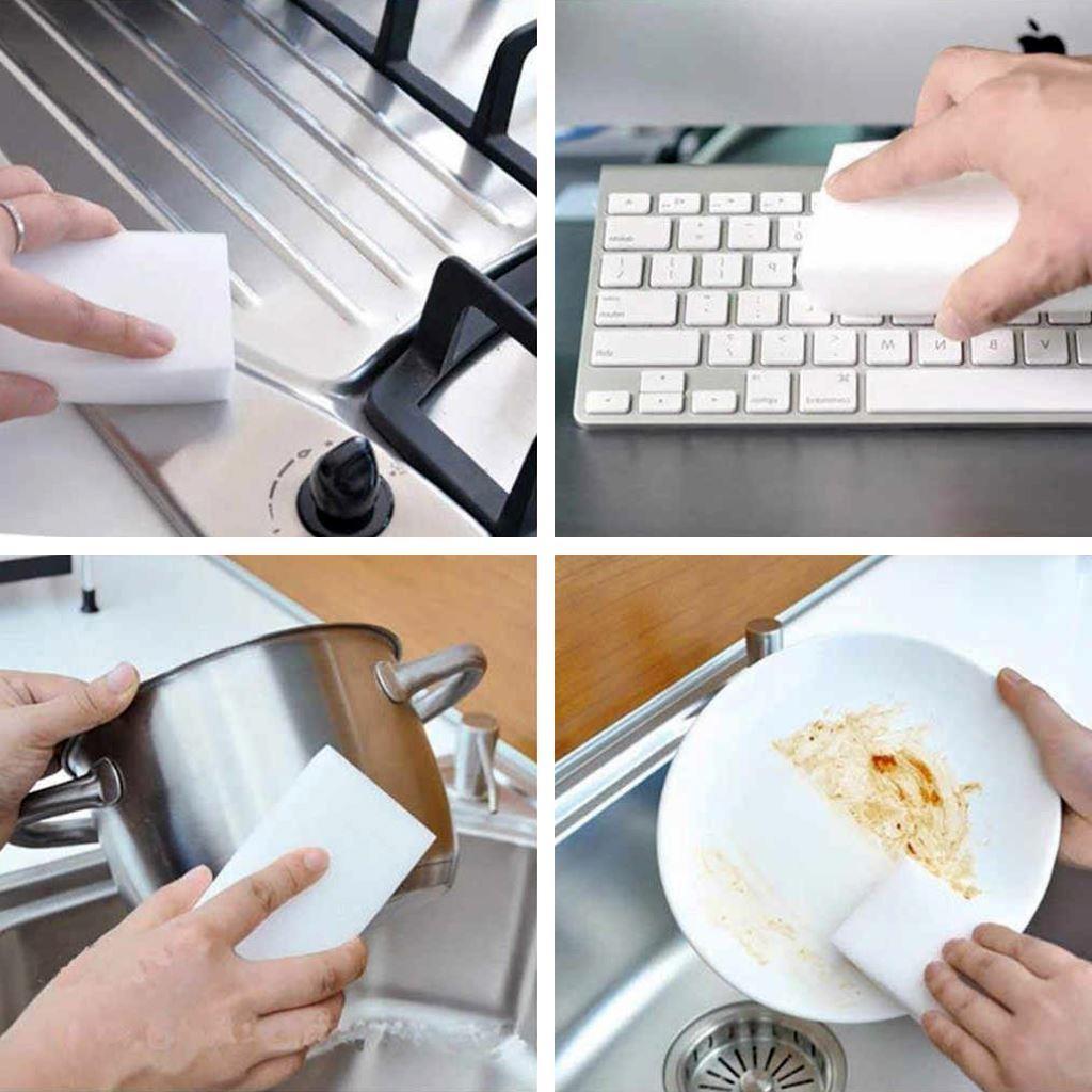 A tisztító szivacs különösen hatékony azokon a helyeken, ahol a kosz hosszabb ideig megmaradt. Használhatja a konyhában a tűzhely és a pult mosására, vagy a fürdőszobában a tükör polírozására. Általa a cipők ismét újszerűen fognak kinézni. Felhasználása nagyon széleskörű. A csomagban 10 darabot talál, így nem szükséges újat vásárolnia, és pénzt takarít meg.