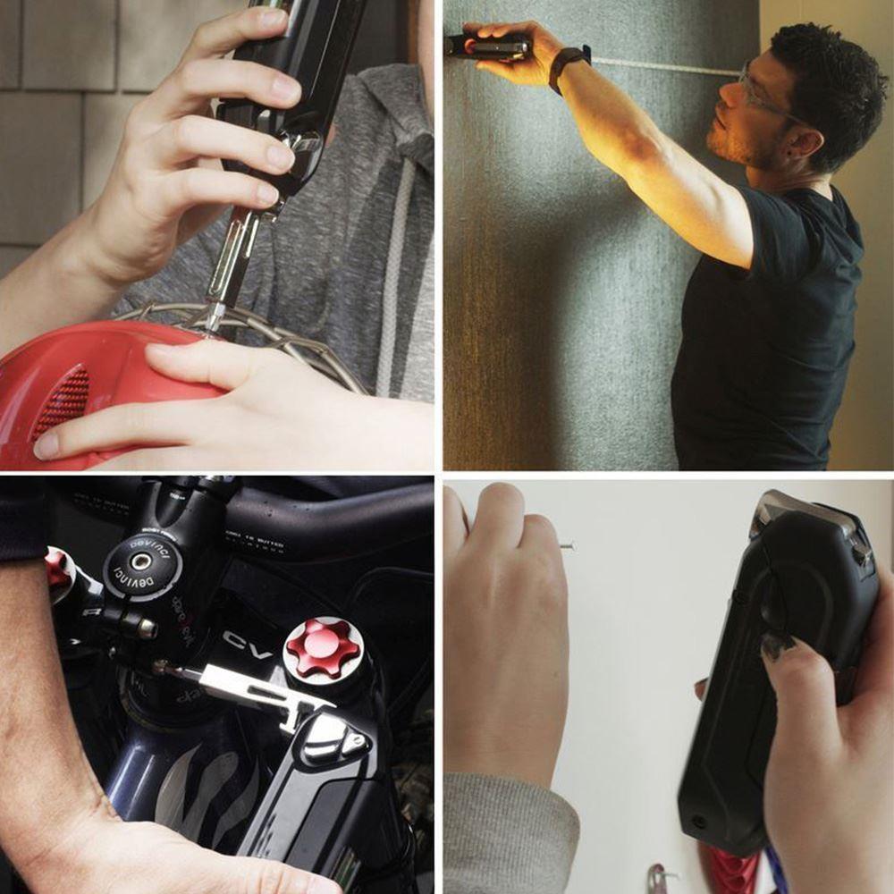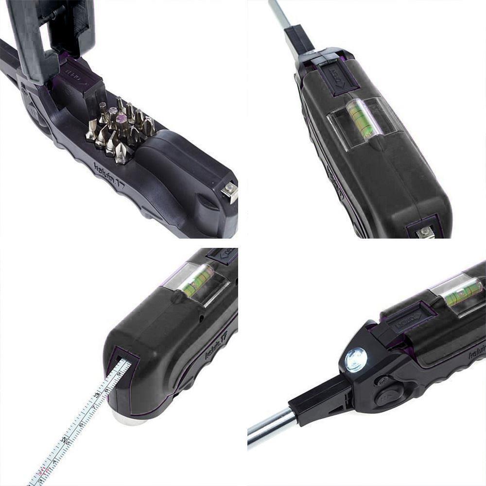 Ezt a multifunkciós segítőt minden nap hasznát veszi! Egy olyan eszköz, amely számtalan felhasználási lehetőséget rejt magában. Ahogy a neve is mutatja, a 17 az 1-ben multifunkciós eszközt akár 17 különböző módon is használhatja, például: vonalzóként, vízmértékként, különböző csavarhúzókként, mágnesként vagy lámpaként.