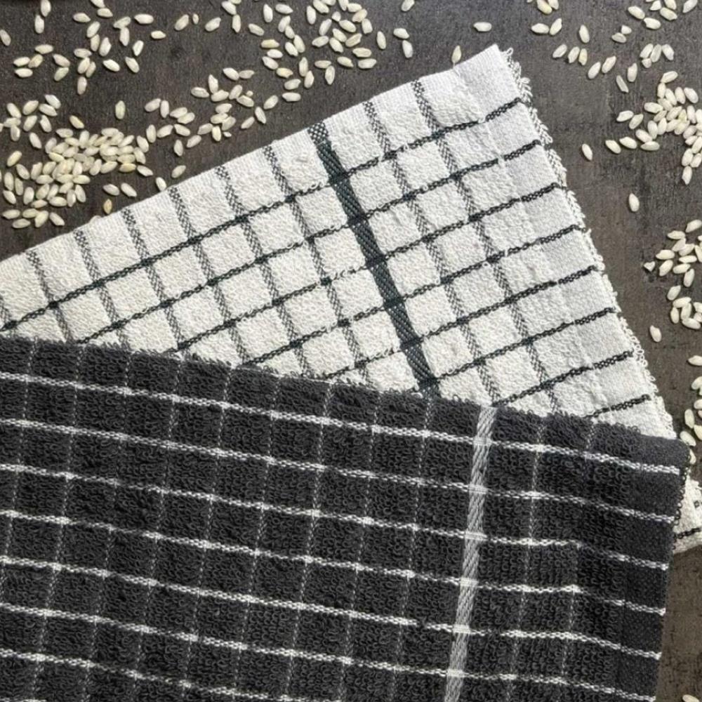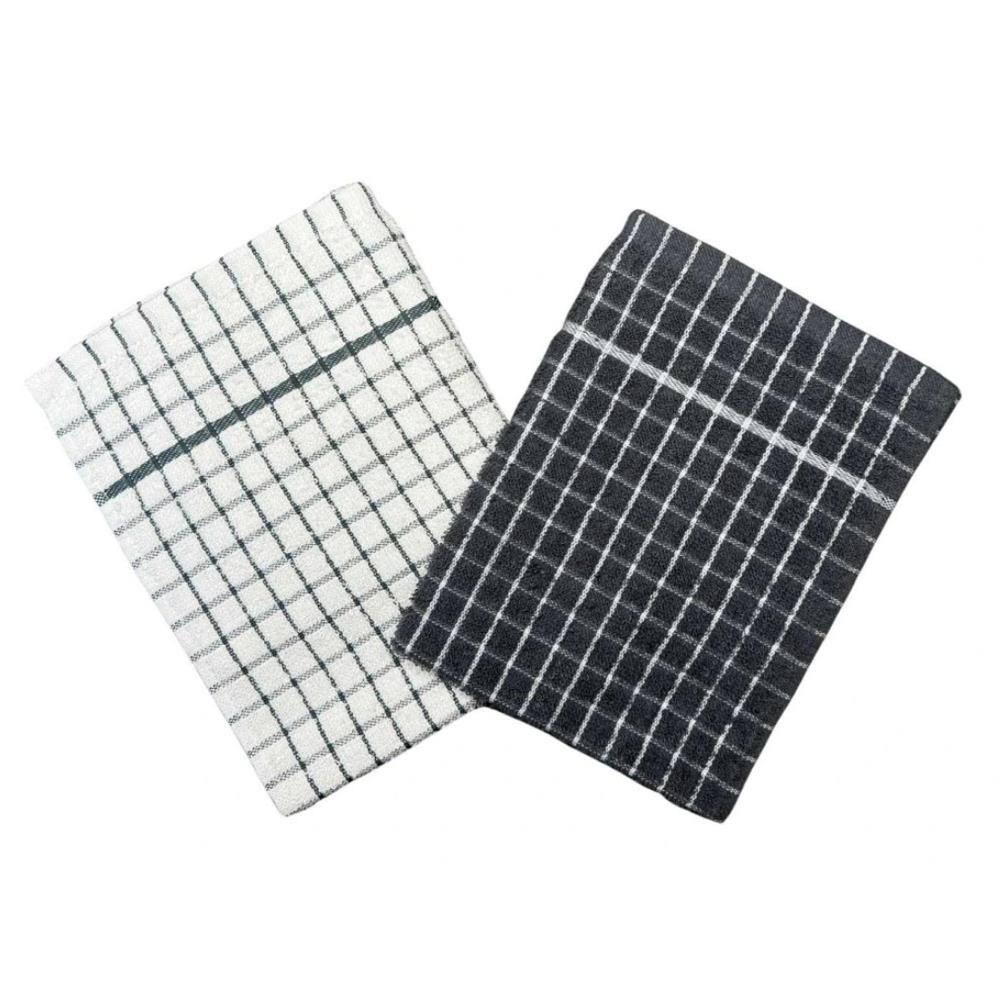 Gazdagítsa otthonát egy praktikus, két darab kiváló minőségű frottír konyharuhából álló szettel, melyek nélkülözhetetlen segítőtársak lesznek a mindennapi főzés és takarítás során. A konyharuhák 100%-os pamutból készültek, így rendkívül jó nedvszívó képességgel és kellemesen puha felülettel rendelkeznek. A modern szürke-fehér dizájn pedig stílusosan kiegészíti konyháját, elegáns megjelenést kölcsönözve neki.