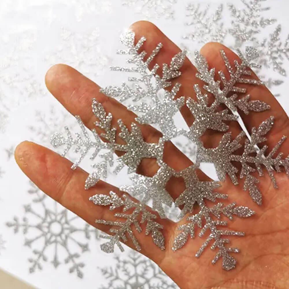 Ezek a gyönyörű csillogó hópehely alakú matricák varázslatos téli hangulatot kölcsönöznek otthonának. Remek választásnak bizonyulnak karácsonyi dekorációnak ablakokra vagy üvegfelületekre a belső terében. Könnyű használatuk ragasztó nélkül lehetővé teszi, hogy nyom nélkül eltávolíthassa őket. Könnyen felhelyezhetők és eltávolíthatók, így szükség esetén többször is áthelyezhetők. Ha tisztán tartja őket, akár többször is felhasználhatja őket, és eltárolhatja őket a következő évre.