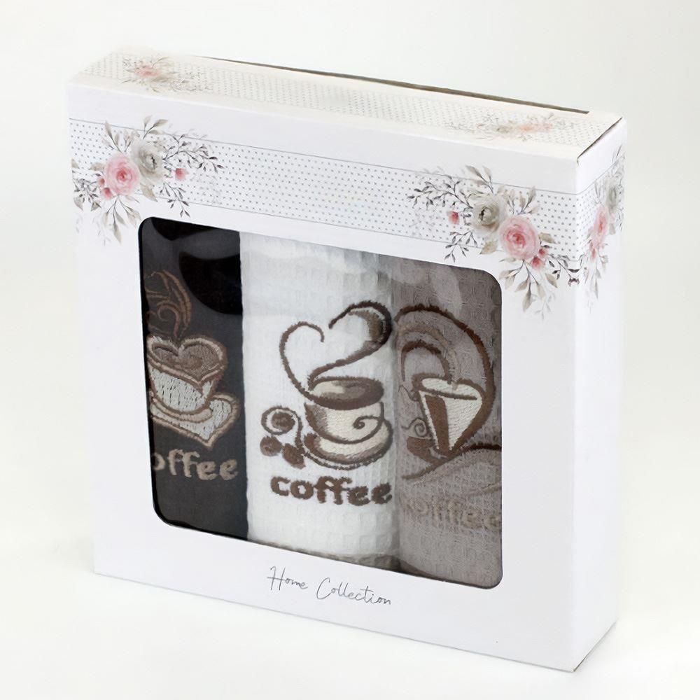 • Waffle törlőkendők ajándékcsomagban, kávés csészék és "coffee" felirattal díszítve
