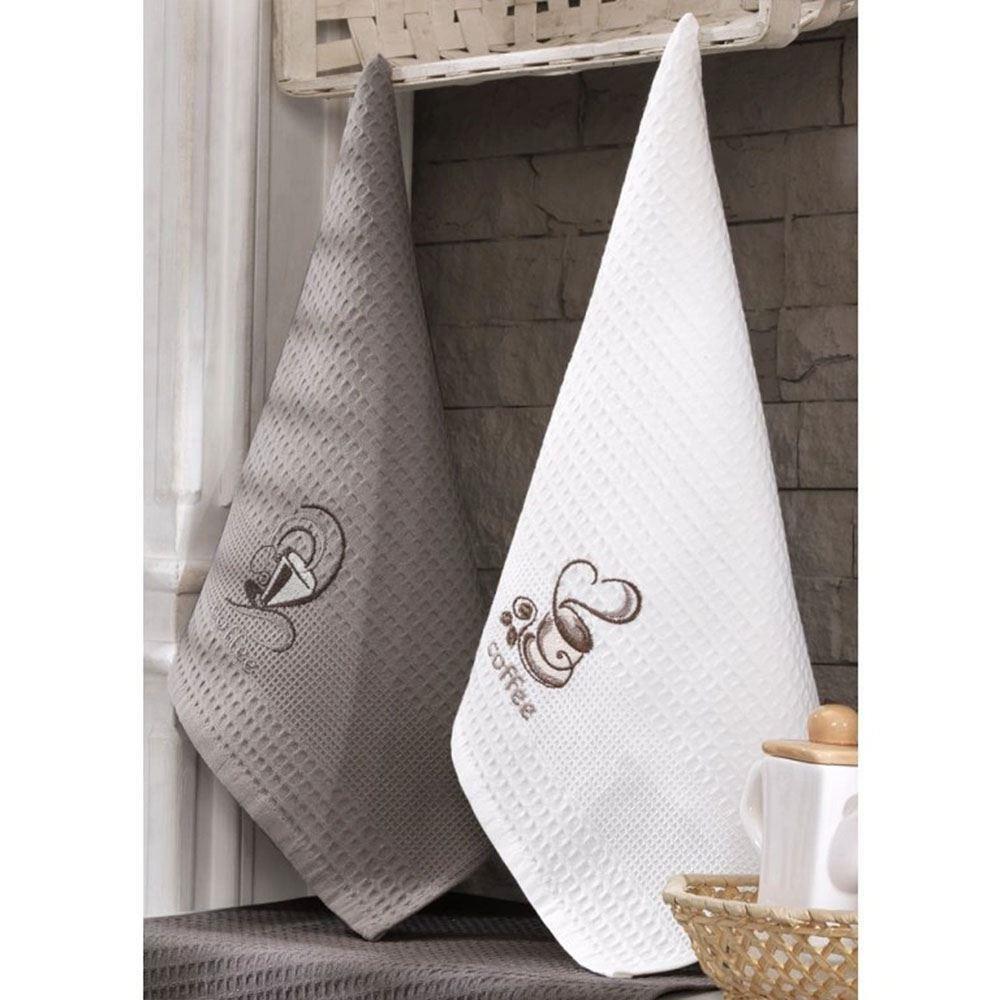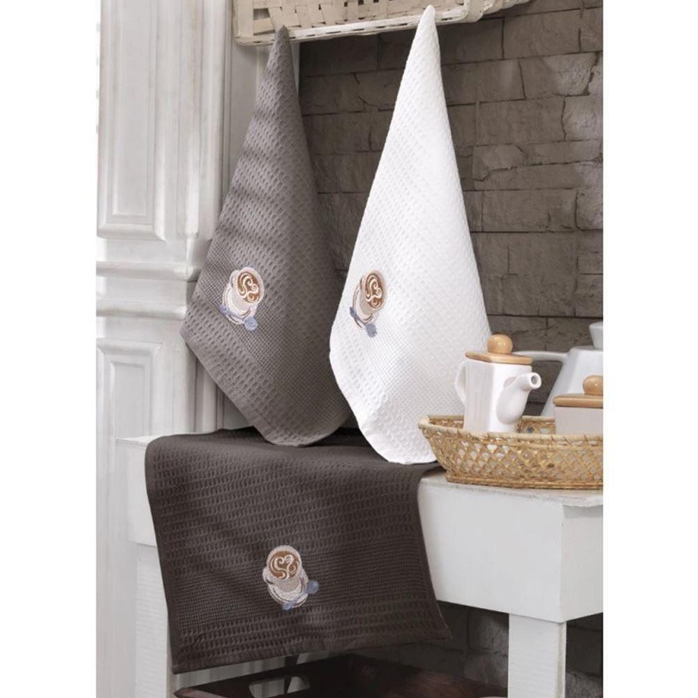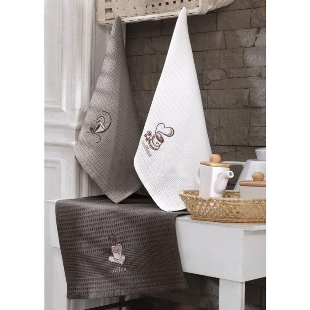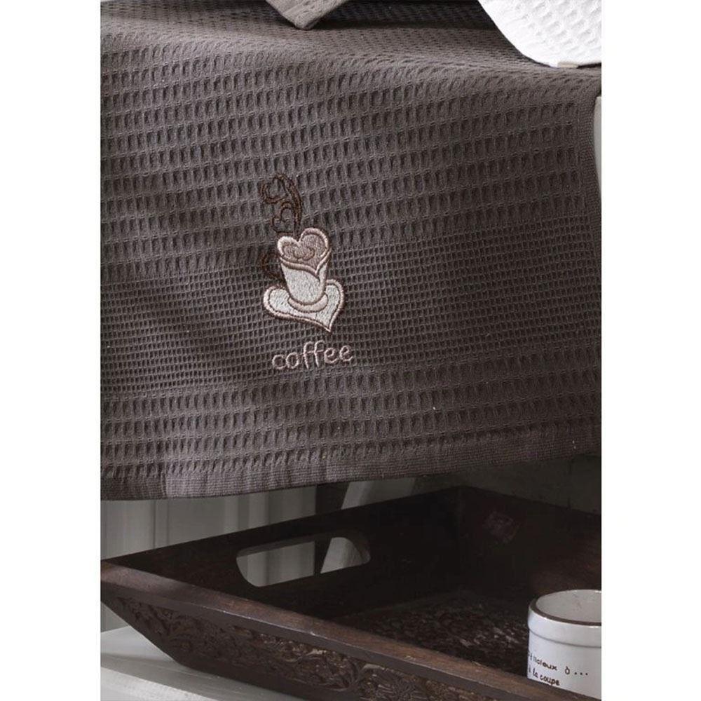 A waffle törlőkendők tökéletes kiegészítők minden konyhába, és ez a készlet ideális ajándék kávé szerelmeseinek. 100% pamutból készültek, ami garantálja a magas nedvszívó képességet és a hosszú élettartamot. A waffle minta kávés csészékkel és "coffee" feliratokkal elegáns és stílusos megjelenést kölcsönöz a konyhának.