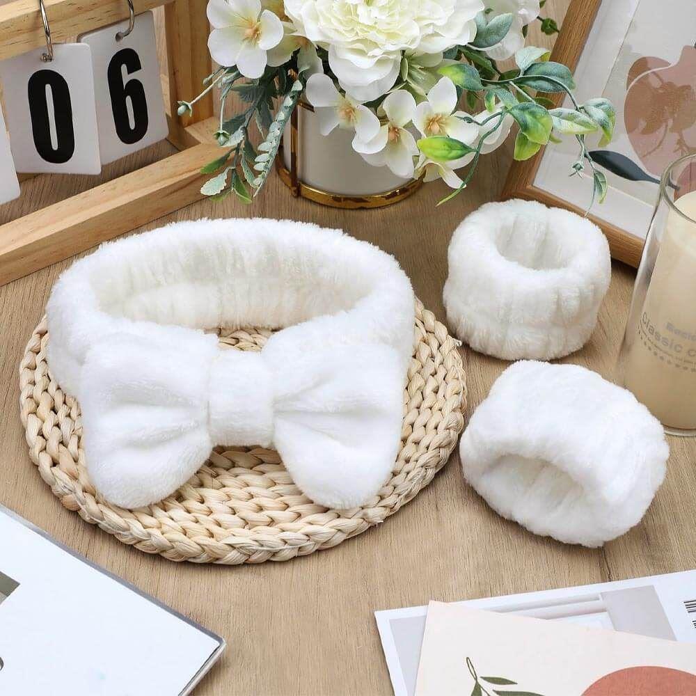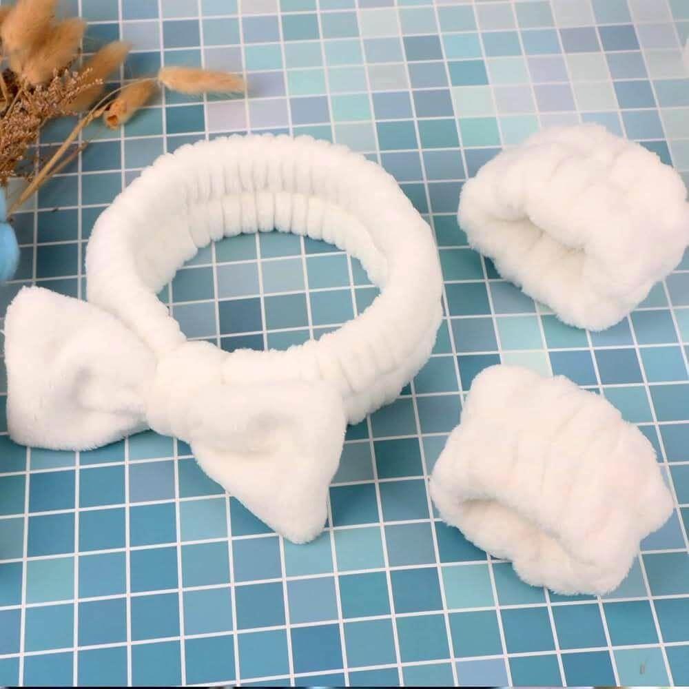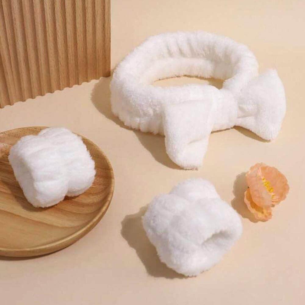 Alakítsa át a mindennapi bőrápolási rutint kényelmes és gondtalan élménnyé. Ez a szett tartalmaz egy puha kozmetikai fejpántot, amely megbízhatóan tartja a hajat távol az arctól, valamint egy pár nedvszívó csuklópántot, amelyek megakadályozzák a víz kellemetlen lefolyását a karokon. Ideális arcmosáshoz, maszk felviteléhez vagy sminkeléshez. Ez a kombináció szárazon tartja a hajat a kozmetikai rutin során.
