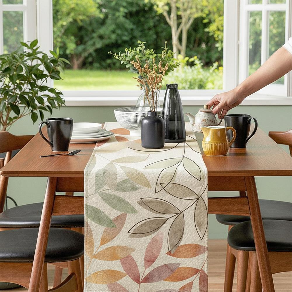 Élénkítse fel otthonát ezzel a gyönyörű, levélmintás futóval, amely eleganciát ötvöz a természetes stílussal. A finom pasztell zöld, narancssárga és bézs árnyalatok kellemes, meleg hangulatot kölcsönöznek asztalának – tökéletes választás őszi és egész éves dekorációként is. A kiváló minőségű anyagnak köszönhetően a futó nemcsak esztétikus, hanem praktikus is – könnyen tisztán tartható. Remekül illik modern vagy rusztikus enteriőrbe egyaránt, otthonának pedig meghitt, harmonikus hangulatot kölcsönöz.