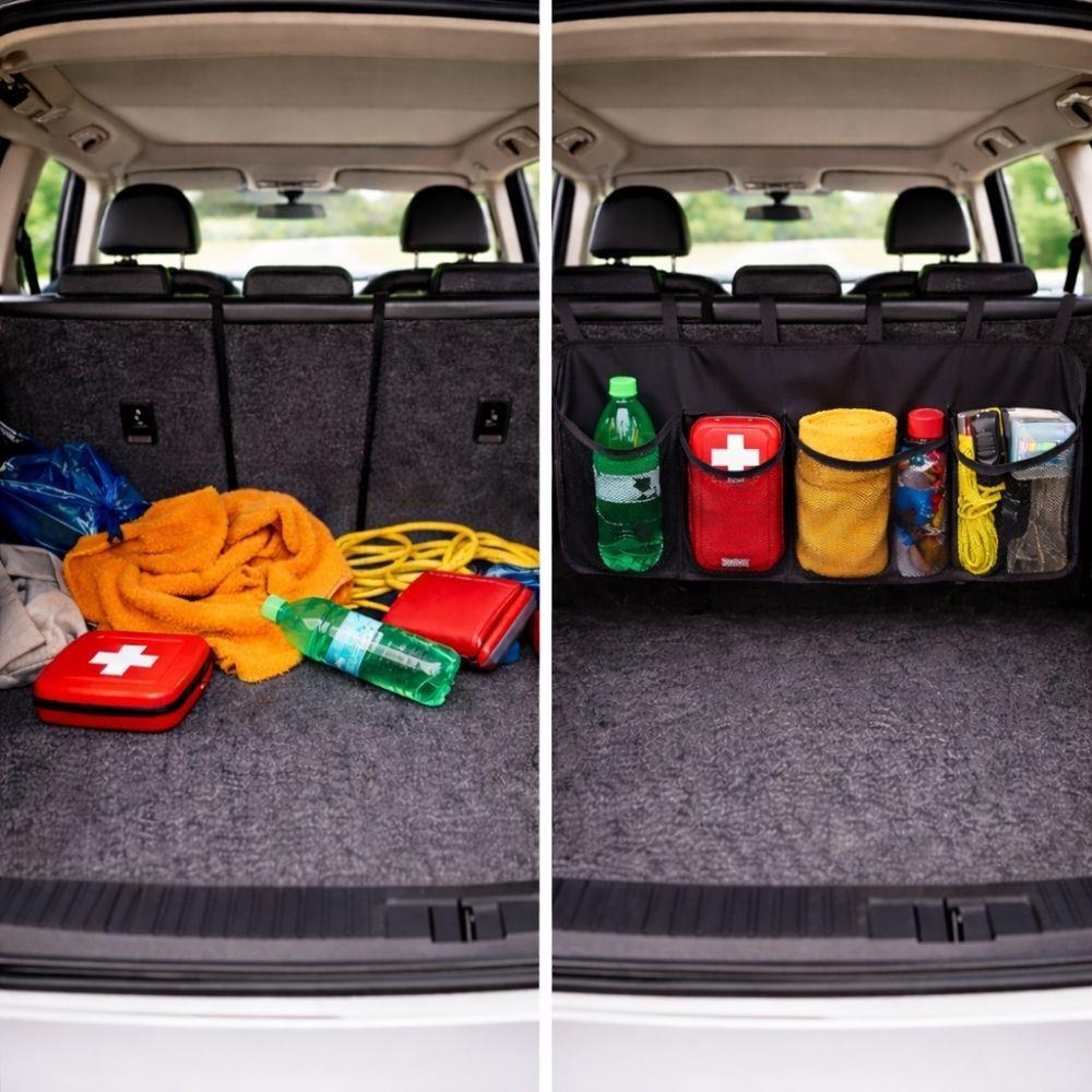 Tárolhat benne uzsonnát, innivalót, könyveket, magazinokat stb. Egy dolog biztos: a gyerekek már nem fognak semmibe belerúgni maguk előtt, és mindenkinek kényelmesebb lesz az utazás. Rengeteg helyet is megtakarít. Mivel a szervező lóg, egyáltalán nem zavarja a csomagtartóban lévő poggyászokat. Szükség esetén egyszerűen kiveszi a kívánt tárgyat a rendezőből.