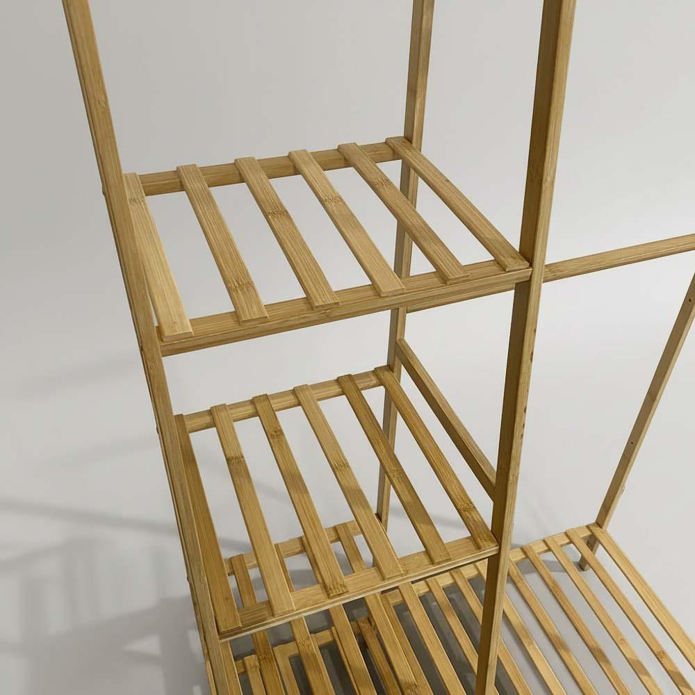 Bambusz ruhatartó állvány polcokkal és akasztóval – 80 cm széles