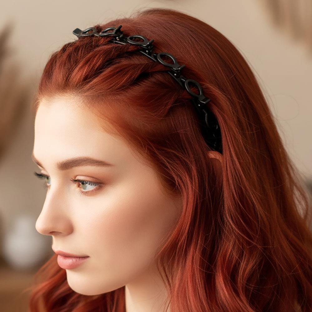 Készítsen gyönyörű frizurákat a hajpánttal, amely teljes hosszában hajcsatokkal van ellátva. Lehetővé teszi igazán egyedi és trendi frizurák készítését, és tökéletesen kiegészíti az összhatását.