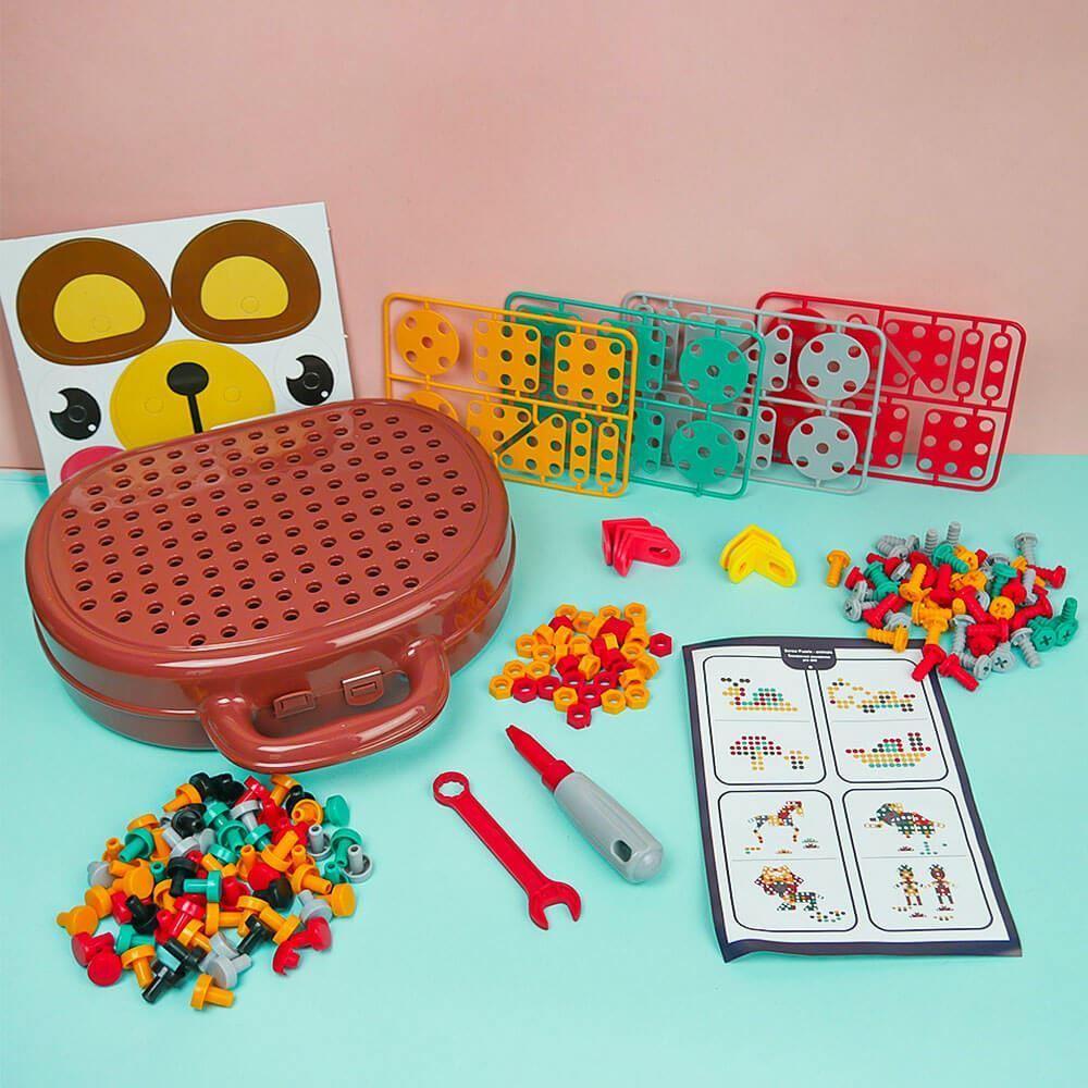 Olyan játékot keres, amely szórakoztatja gyermekeit, miközben fejleszti is őket? A csavaros építőjáték tökéletes eszköz a finommotorika és a technikai készségek fejlesztéséhez. Ezzel az építőjátékkal a gyerekek különféle formákat és szerkezeteket alkothatnak csavarok és szerszámok segítségével, ami serkenti kreativitásukat és képzelőerejüket is. A csomagban található egy útmutató mintákkal, amely segíti őket a különféle csavarozható alkotások elkészítésében.