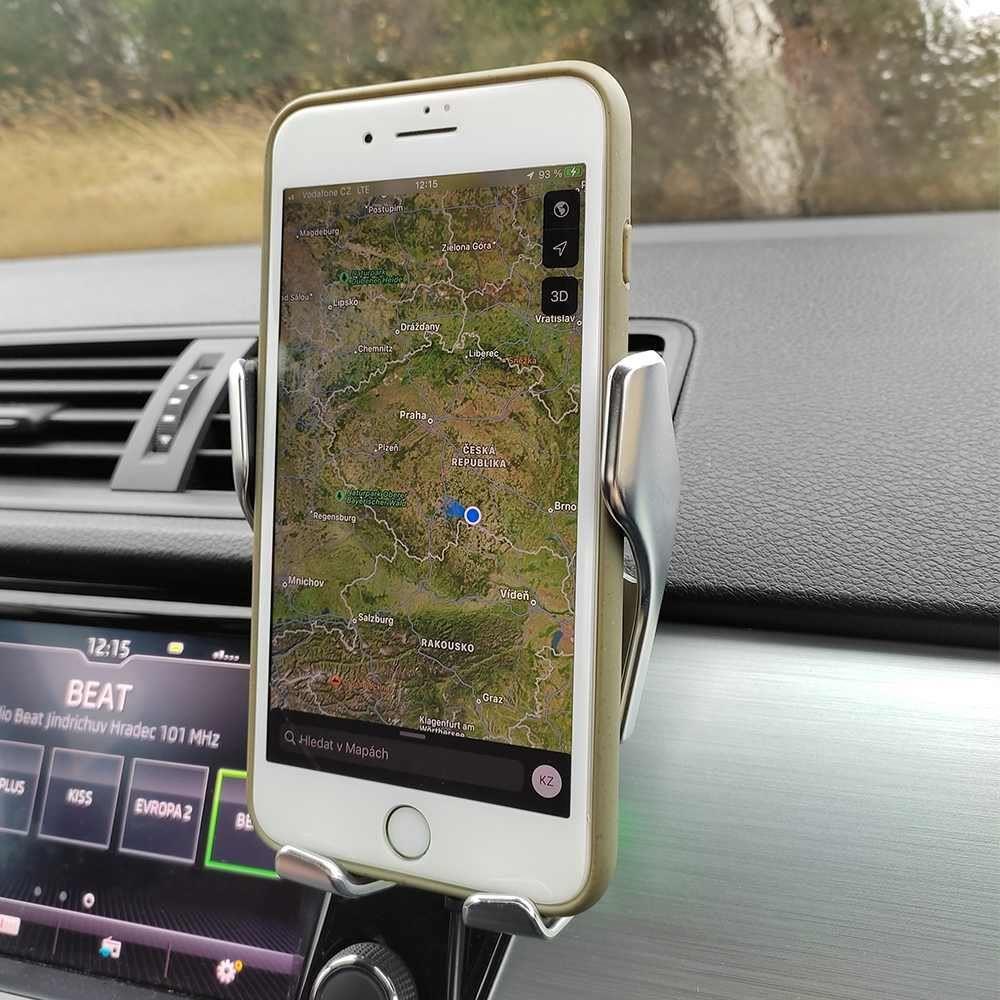 Kényelmes töltés utazások során. Vezeték nélküli töltés a beépített Qi vevőegységgel rendelkező készülékekhez. A mobiltelefon tartó nemcsak biztonságosan rögzíti a telefont, hanem folyamatosan tölti is. A telefontartót könnyedén rögzítheti az autó szellőzőrácsára. A tartó 360°-ban forgatható. Kétségtelen előnye a mozgásérzékelő. Ha a mobiltelefont hozzáérinti, a tartó magától kinyílik. Ennek köszönhetően a telefont csak egy kézzel helyezheti a tartóba!