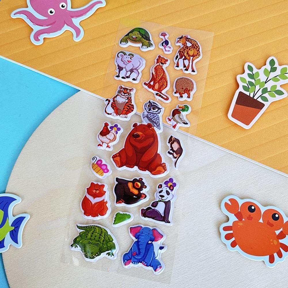 Kidomborodó állatmatricák minden gyermek számára, aki szeret alkotni és játszani. A gyerekek saját történeteket alkothatnak, díszíthetik velük az iskolai füzeteket, naplókat vagy ajándékokat szeretteiknek. Minden matrica 3D hatása révén ragadja meg a figyelmet, hiszen kissé kiemelkedik a síkból.
