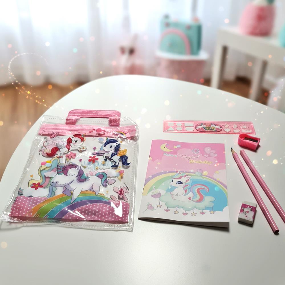 • Komplett iskolai felszerelés szett aranyos unikornisos motívummal