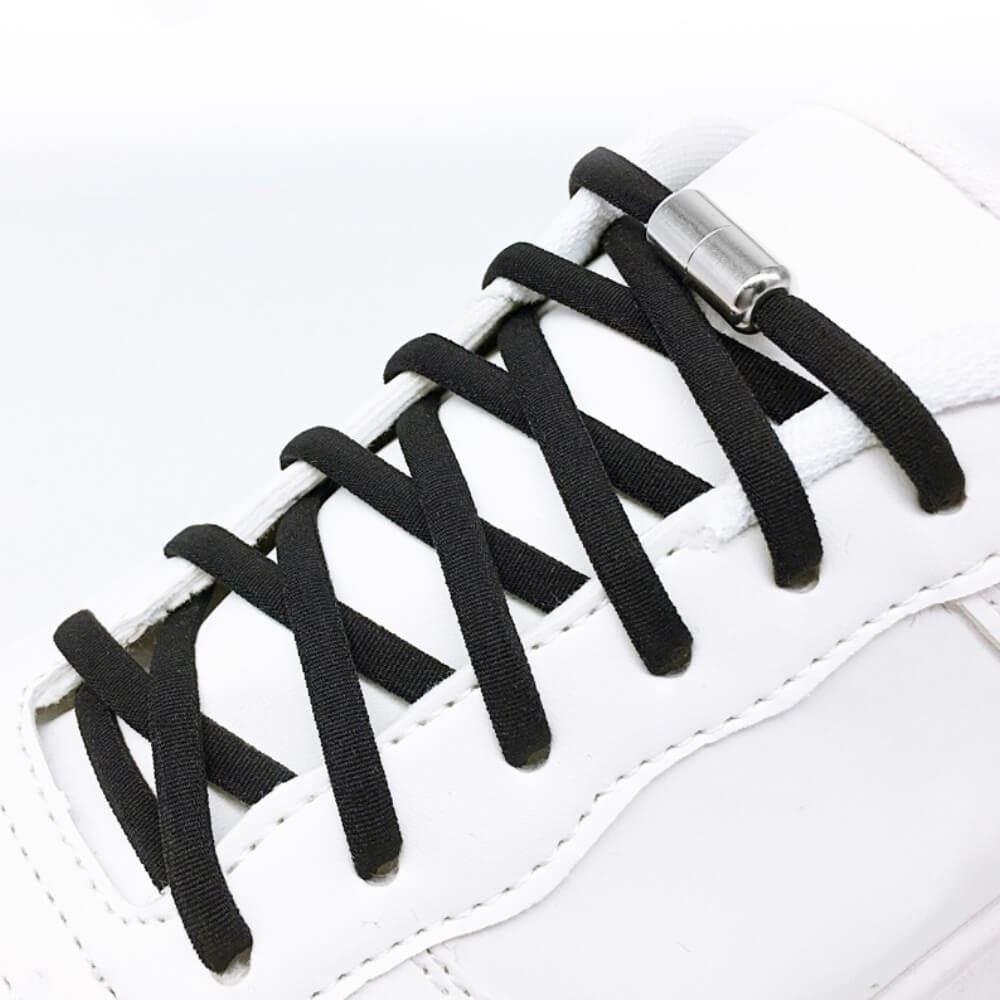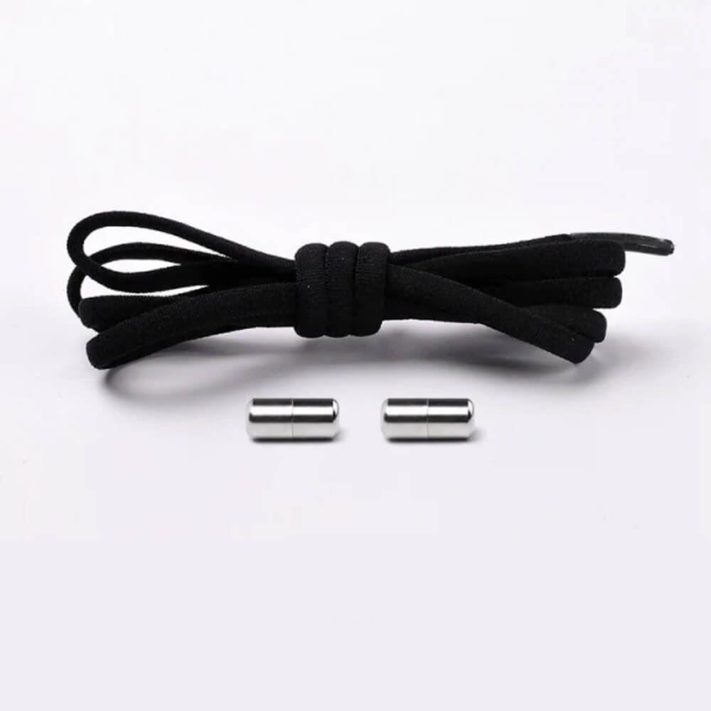 Elasztikus fémkapcsos cipőfűző - fekete