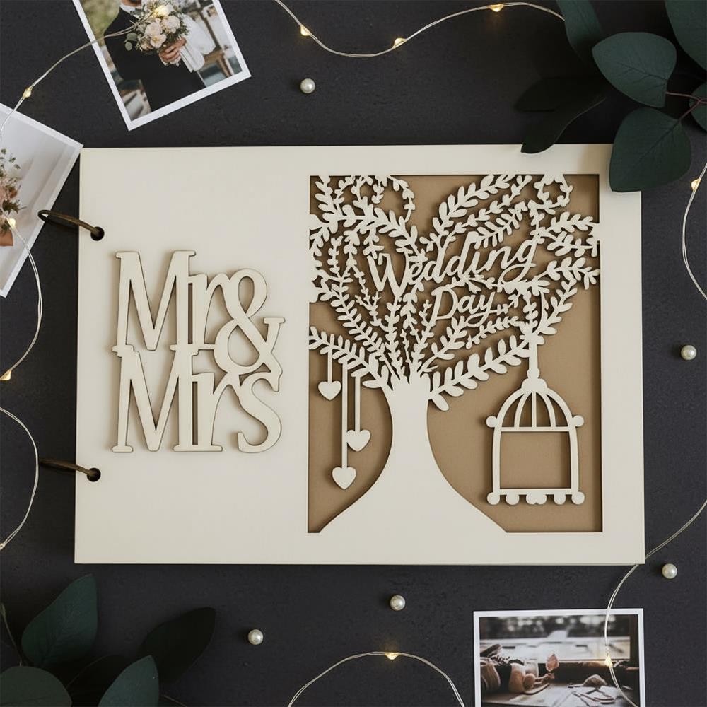 Izgatottan várjátok a nagy napot, és azon gondolkodtok, mi az, ami még hiányzik? Talán pont ez a bájos fa vendégkönyv! Sok olyan pár, akik már túlvannak az esküvőjükön, egyetértenek abban, hogy a sok rohanás közepette nem nagyon volt idejük minden vendéggel alaposan beszélgetni, és ez nagy kár. Ez a könyv ugyan nem garantálja, hogy lesz időtök a vendégeitekre, de biztosítja, hogy évek múlva is tudni fogjátok, kik voltak ott az esküvőtökön, és egy pár üzenetet is olvashattok majd, amiket ott hagytak nektek.
