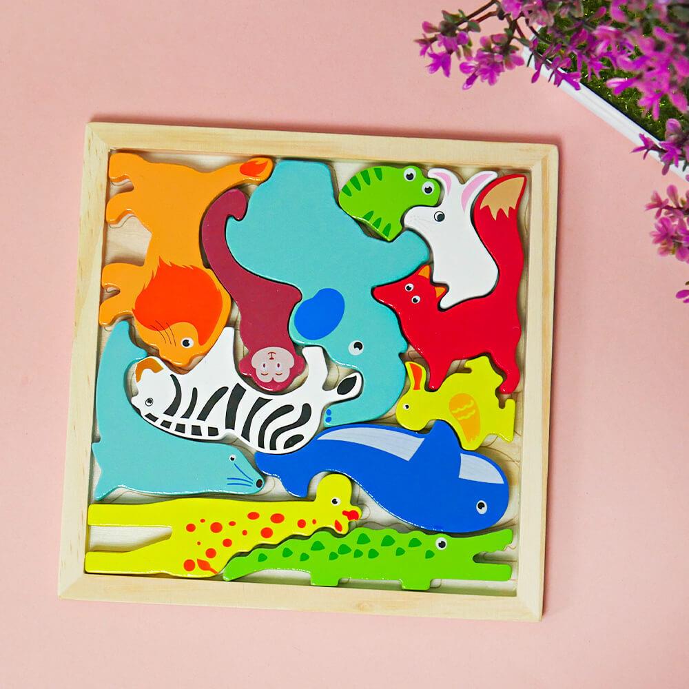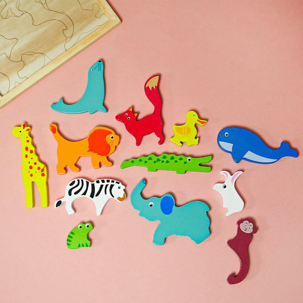 Tanulás és játék egyben – ezek a fa állatos puzzle-k, amelyeket ki lehet venni a fa dobozból, és hagyhatja, hogy gyermeke megpróbálja visszahelyezni őket négyzet alakba, vagy külön-külön is játszhat az egyes darabokkal. A fa puzzle-k támogatják gyermeke logikus gondolkodását és képzelőerejét. Az egyes darabok szépen színesek, így lekötik a gyerekek figyelmét.