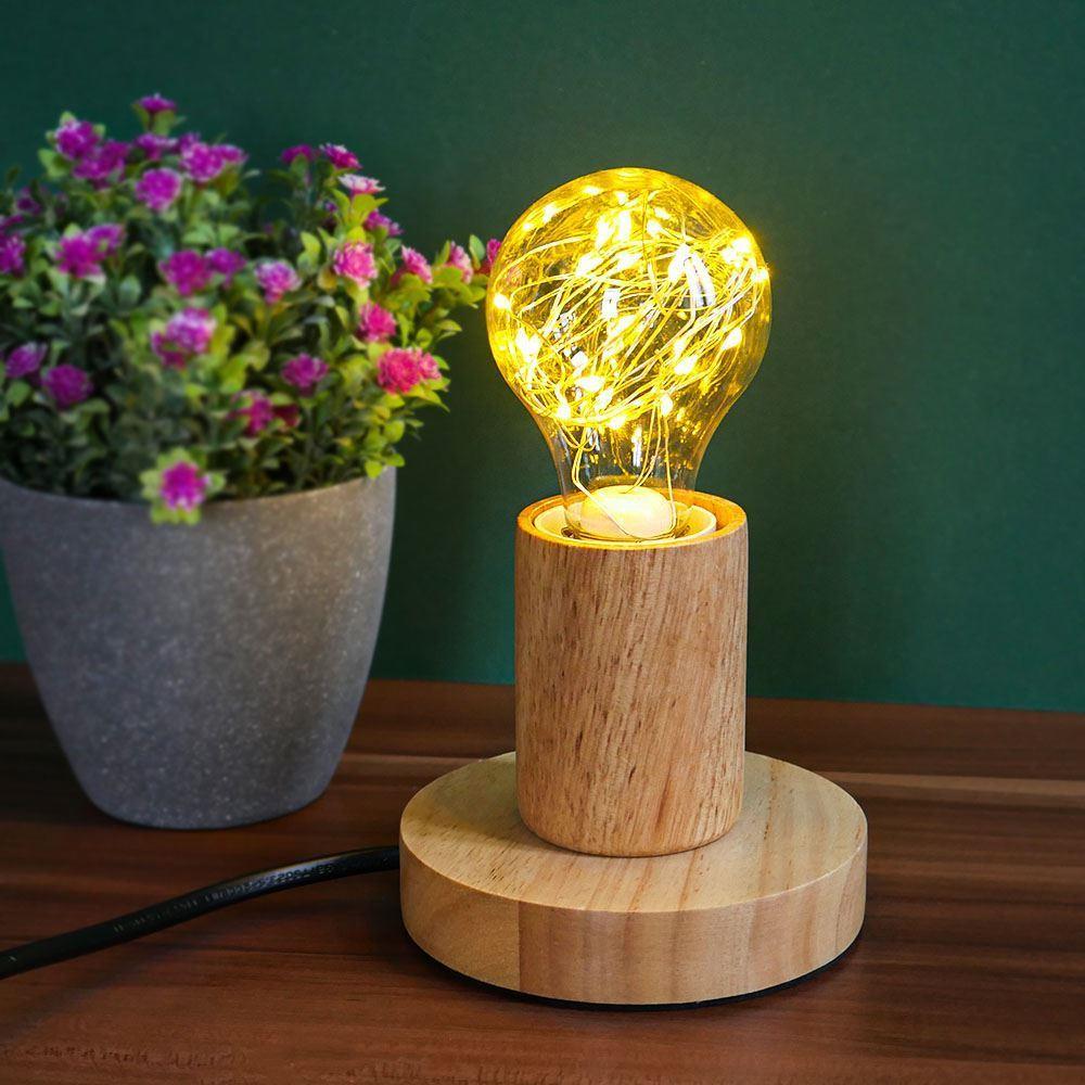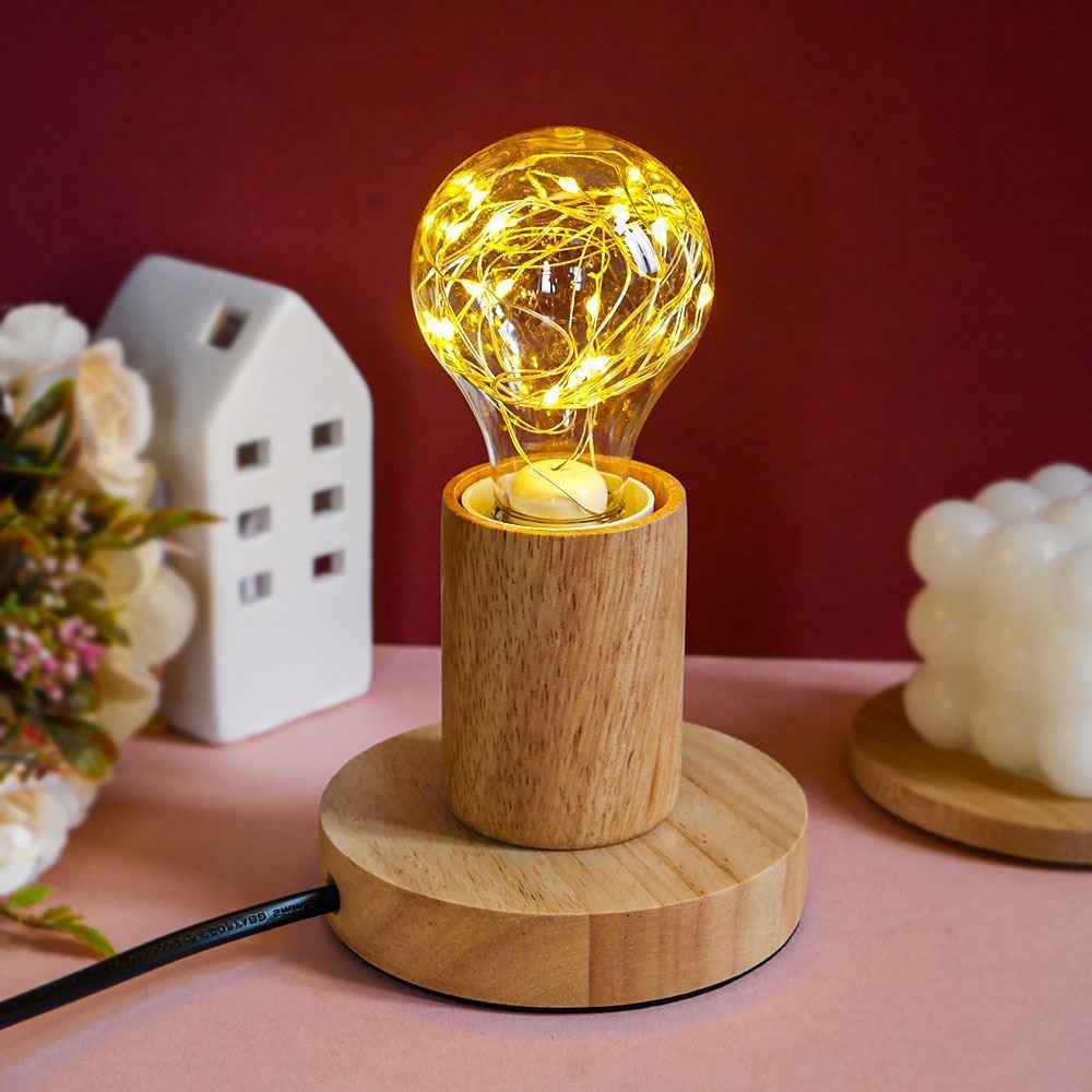 Az asztali lámpa izzóval elegáns megjelenést kölcsönöz belső terének, miközben elegendő fényt biztosít olvasáshoz, munkához vagy pihenéshez. A fa asztali lámpa izzóval ideális dekorációs elem bármely belső térbe. Az állványt és az izzót külön-külön is használhatja.