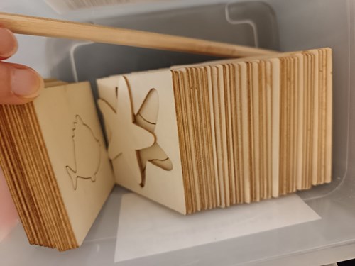 A formákat fából készült kártyákba nyomtatják vagy közvetlenül a fába faragják őket. A gyermekek így megpróbálhatják a külső és belső sablont is körberajzolni. A kártyák így különböző alkotásokhoz is alkalmasak, az egyszerű papírra rajzolástól kezdve a saját memóriakártyák készítéséig.
