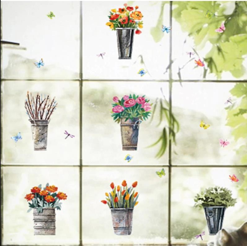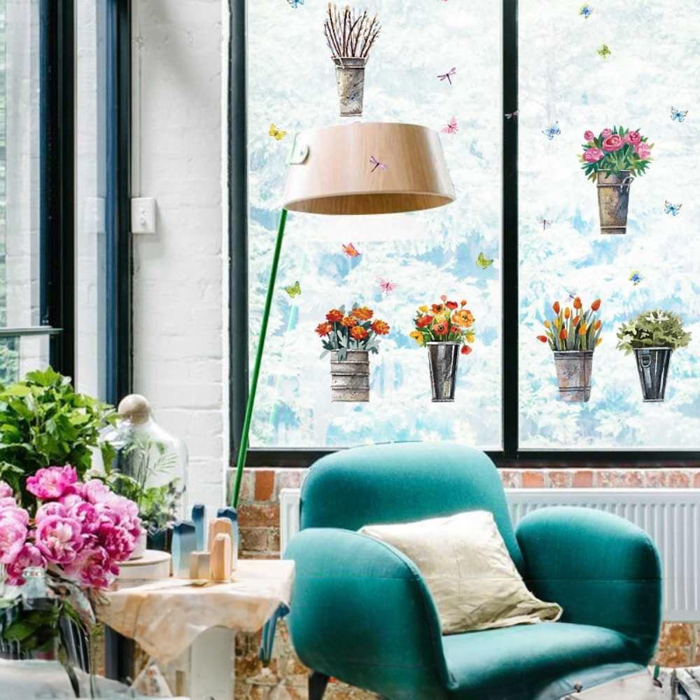 Virágzó virágládákról álmodik az ablak előtt, de a lakóhelye ezt nem engedi meg? Nem baj! Hagyja virágozni otthonát egy kicsit más módon. A gyönyörű virágcserepes motívummal ellátott matricát felragaszthatja a falra és az ablakra is. Ez a kellemes dekoráció stílusosan kiegészíti a belső teret.