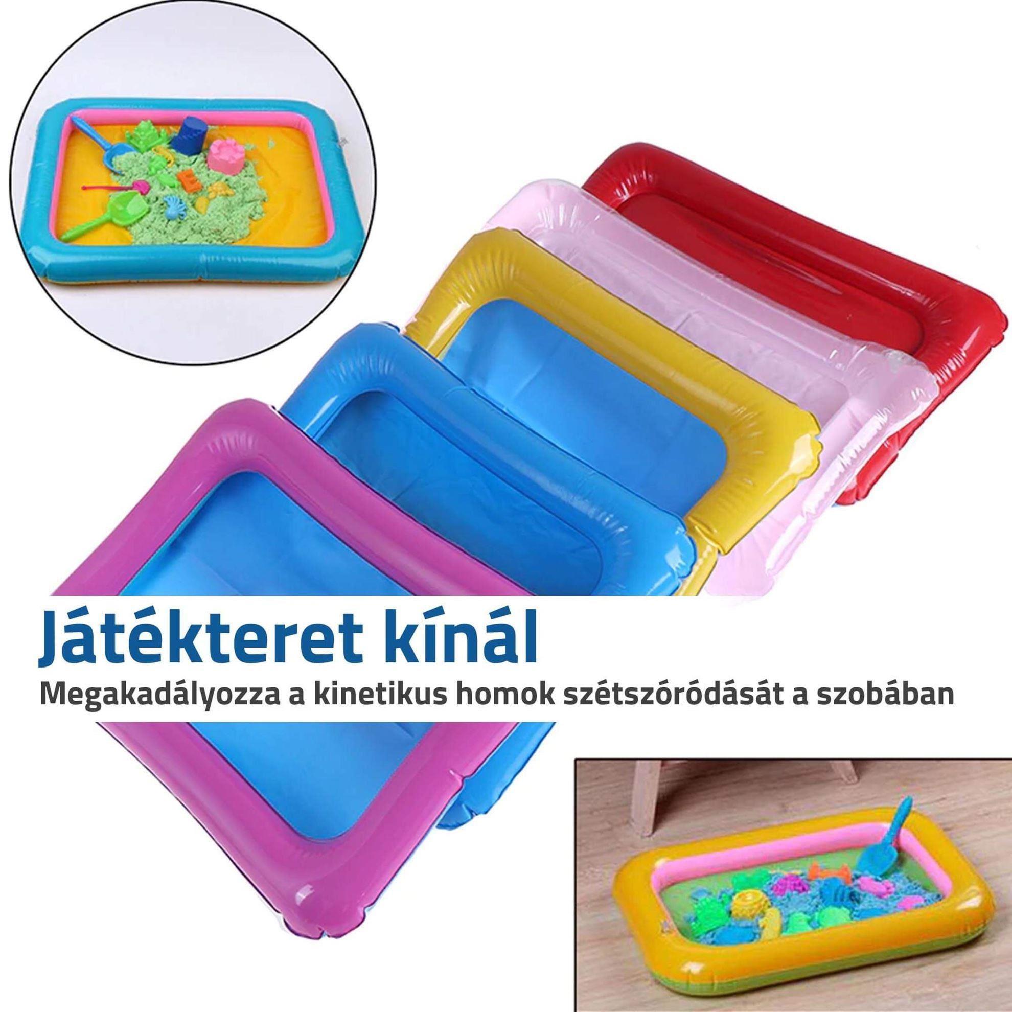 Vannak már kinetikus homokja és formái is otthon? Az egyetlen dolog, ami most már hiányzik, az egy hely, ahol a gyerekek játszhatnak a homokkal. A felfújható párnát közvetlenül a kinetikus homok alá tervezték. A párna mérete elég nagy ahhoz, hogy a homok belül egy kupacban maradjon, és ne heverjen az egész szobában.
