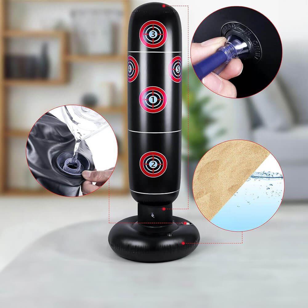 A felfújható boxzsák remek választás mindazok számára, akik szórakoztató és hatékony módját keresik fizikai kondíciójuk javításának. Könnyű és kompakt kialakítása lehetővé teszi az edzést bárhol, legyen az otthon vagy a kertben. Csak egyszerűen fel kell fújni, az alapba vizet tölteni vagy homokot önteni, és már kezdődhet is a boxolás!