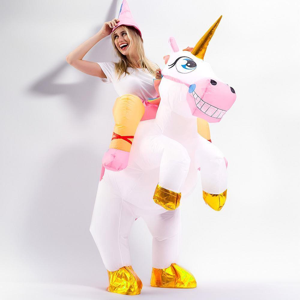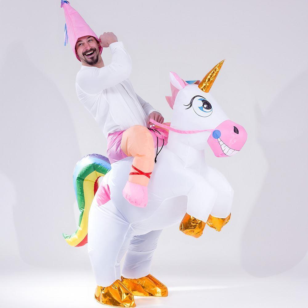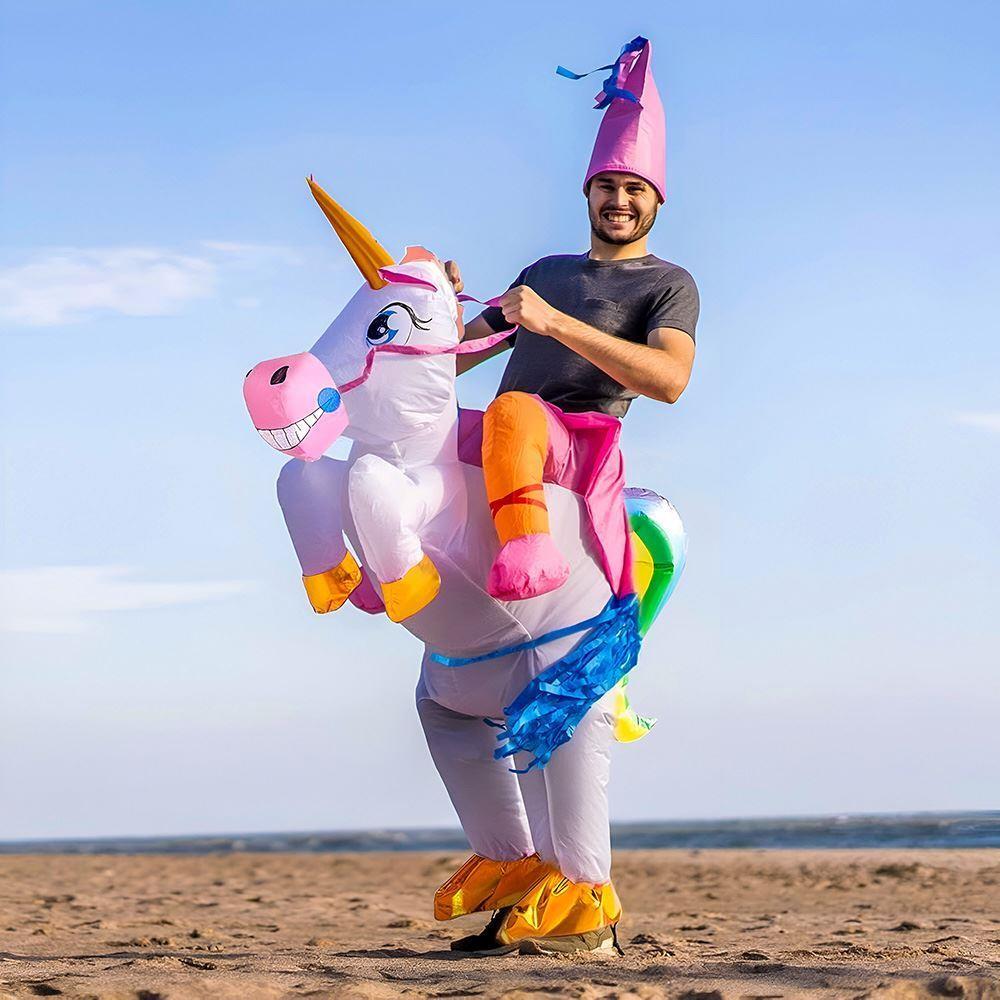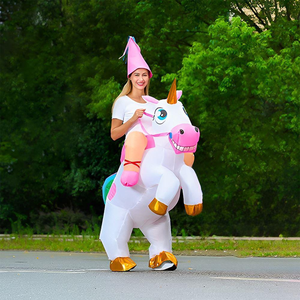 Élvezze a mesés szórakozást felfújható unikornis jelmezünkkel! Tökéletes választás farsangokra, tematikus bulikra vagy csak egyszerűen örömteli pillanatokhoz családi összejöveteleken. A jelmez önfelfújódó a praktikus ventilátor segítségével. A kényelmes viseletet a rugalmas derék és a tágas belebújó nyílás biztosítja. A csomag tartalmazza a hegyes sapkát is, aminek köszönhetően garantáltan Ön lesz a figyelem középpontjában!