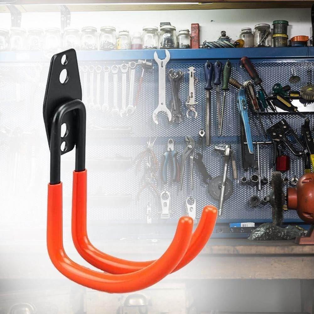 Hozzon létre egy rendszerezett garázst, műhelyt vagy dolgozószobát. Ezzel az eszközzel soha többé nem kell aggódnia a káosz, a rendetlenség vagy a stressz miatt, amit az összegabalyodott kábelek vagy a hiányzó szerszámok okoztak! Az akasztó egyszerűen rögzíthető fúrással a falban. Az akasztó szilárdan tart, és úgy használhatja, ahogyan csak szeretné. A kampó gumírozott végeinek köszönhetően a szerszámok vagy más felakasztott tárgyak nem sérülnek vagy karcolódnak meg.