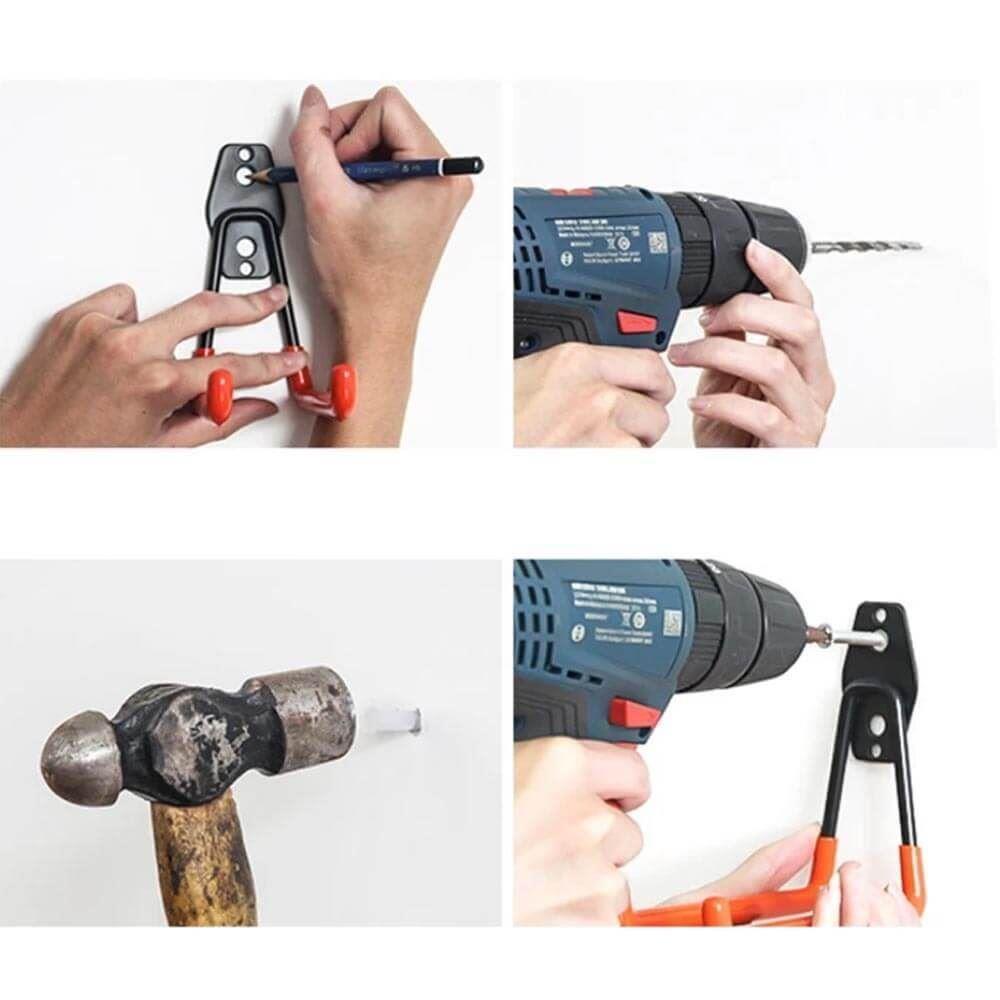 Hozzon létre egy rendszerezett garázst, műhelyt vagy dolgozószobát. Ezzel az eszközzel soha többé nem kell aggódnia a káosz, a rendetlenség vagy a stressz miatt, amit az összegabalyodott kábelek vagy a hiányzó szerszámok okoztak! Az akasztó egyszerűen rögzíthető fúrással a falban. Az akasztó szilárdan tart, és úgy használhatja, ahogyan csak szeretné. A kampó gumírozott végeinek köszönhetően a szerszámok vagy más felakasztott tárgyak nem sérülnek vagy karcolódnak meg.
