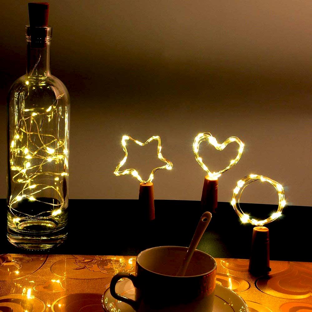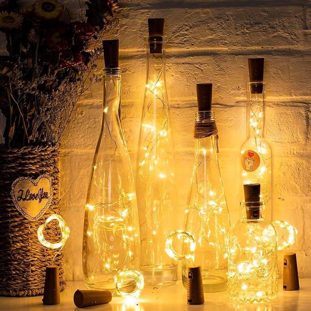 A fényfüzér egy különleges lakásdekoráció, amely egyben rendhagyóan feldíszítheti az esküvői helyszínt is. A füzér érdekessége, hogy tartozéka egy parafadugó utánzat, mellyel bármilyen üveg vagy átlátszó palackot le lehet zárni. Az üvegbe tekerje bele a 2 méter hosszú fényfüzért, majd a parafán található ON gombot megnyomva kapcsolhatja be a világítást.