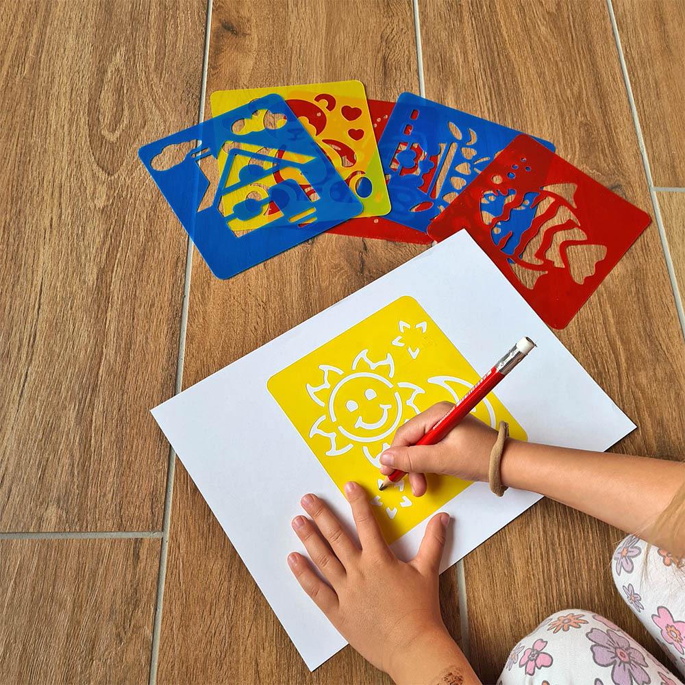 Fedezze fel az alkotás világát ezzel a 6 darabos színes festősablon készlettel! A gyerekek könnyedén és szórakozva rajzolhatnak velük járműveket vagy állatokat - különböző motívumok közül választhatnak. Csak helyezze a sablont a papírra, rajzolja körbe a formát, és színezze ki – és máris kész az eredeti kép.