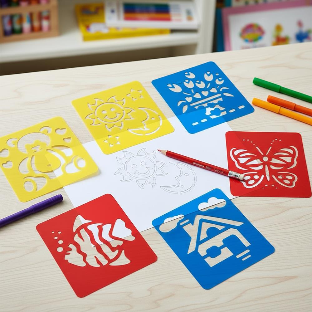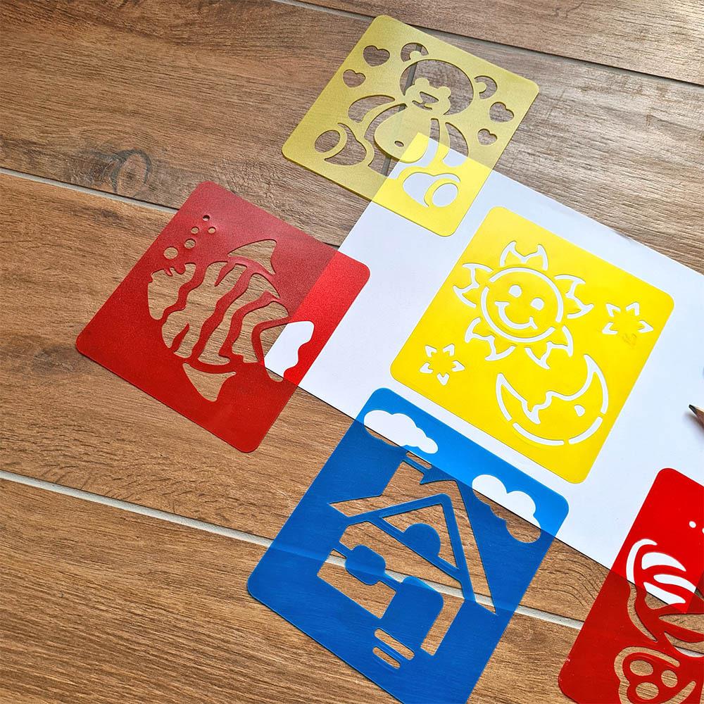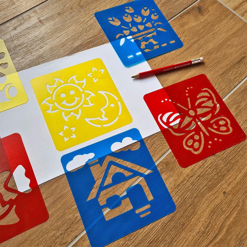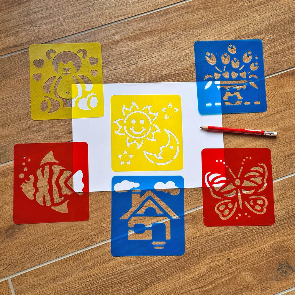 A tartós anyag lehetővé teszi a sablonok többszöri használatát, és ideálisak otthoni alkotáshoz, valamint óvodákba vagy művészeti szakkörökre. Remek módja a gyerekek fantáziájának és motorikus képességeinek fejlesztésére! További alkotáshoz elég csak vízzel lemosni őket.