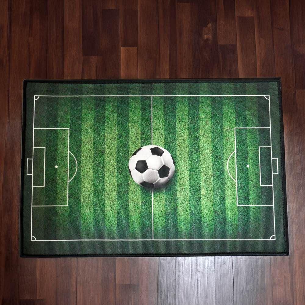 Ezzel a futballpálya mintás szőnyeggel garantáltan meglepetést okoz! Remekül illik gyerekszobába, ahol a kis sportoló biztosan jól elfoglalja vele magát, de dolgozószobába vagy férfi klubszobába is tökéletes, ahol a futballmérkőzések komoly dolognak számítanak.
