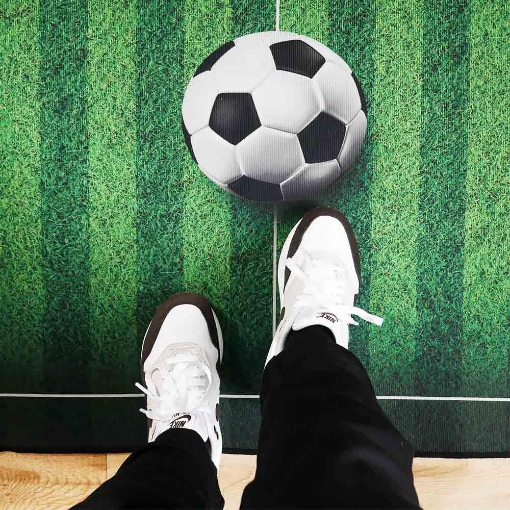 • A szőnyegen lévő focipálya sportos hangulatot kölcsönöz a szobának