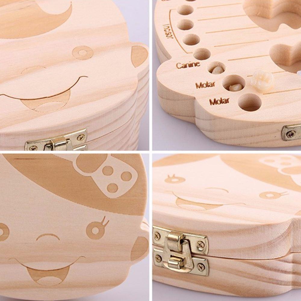 Ez a vidám fa dobozka aranyos tárolóhely gyermekeink kincseinek megőrzésére. Hiszen nem mindenki emlékszik az első kihullott fogára, vagy arra, hogy melyik is volt az. Ennek a dobozkának köszönhetően lehetőségetek van a kihullott tejfogakat eltenni, és amikor a gyermekeitek felnőnek, megmutathatjátok nekik ezeket az értékes emlékeket – ki tudja, talán egy vidám történetre is visszaemlékeztek majd.