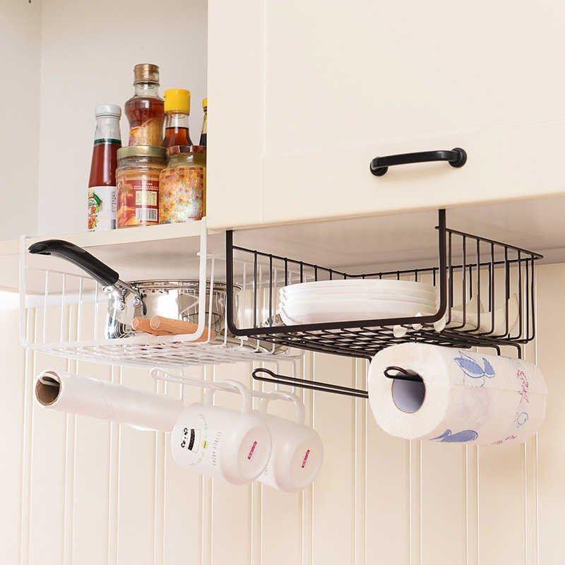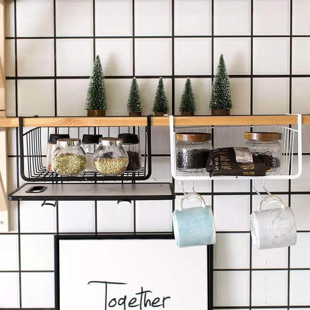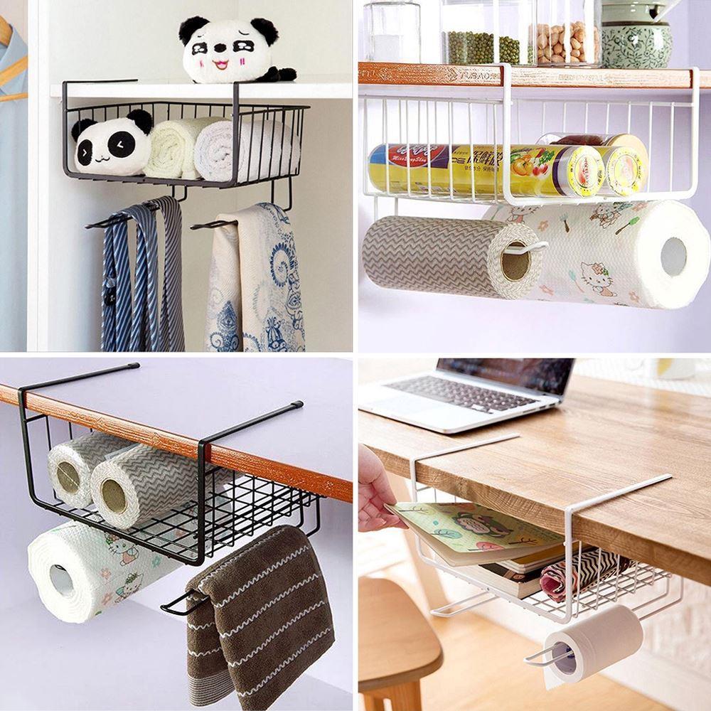 A fém függő kosár helyet takarít meg minden helyiségben, és rendben tartja a dolgokat. Használható a konyhában az edények, a vágódeszka vagy a papírtörlők tárolására. A fürdőszobában törölközők tárolására alkalmas, a ruhásszekrényben pedig ruhák tárolására. A kampókon nyakkendőket, törölközőket vagy kis táskákat akaszthat fel. A praktikus rendező a nappaliban is szolgál könyvek és más apróságok tárolására.