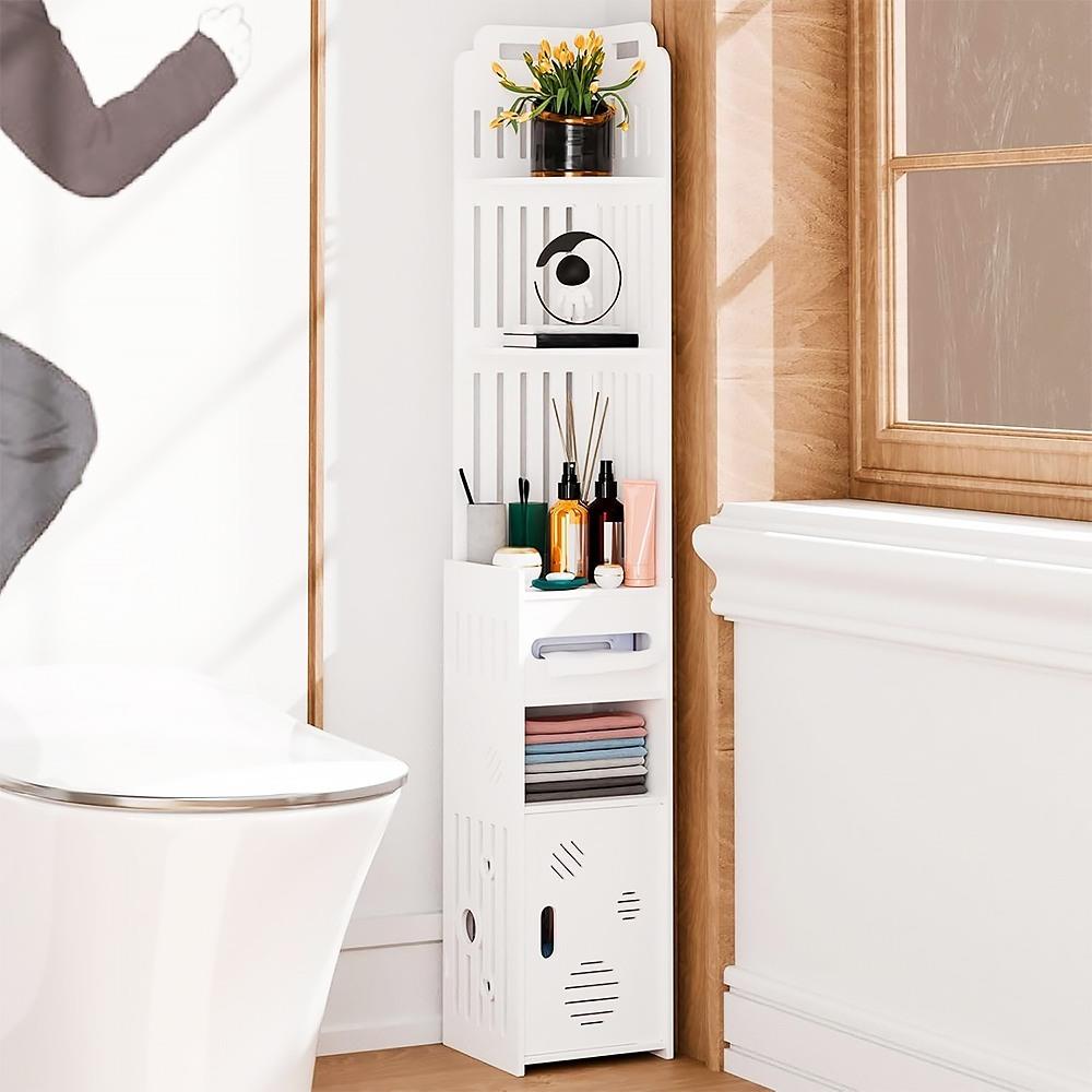 Ez a fürdőszobai szekrény praktikus megoldás a kis fürdőszobákba, ahol azonban legalább egy szabad sarok található. Első pillantásra csekély méretei ellenére ugyanis elegendő tárhelyet biztosít, így megszabadulhat a különböző szétszórt drogériától vagy tisztítószerektől, ráadásul a dizájnos nyílásoknak köszönhetően megfelelően szellőztetett. Próbálja ki, és látni fogja, hogy kis helyen is el lehet pakolni sok mindent.