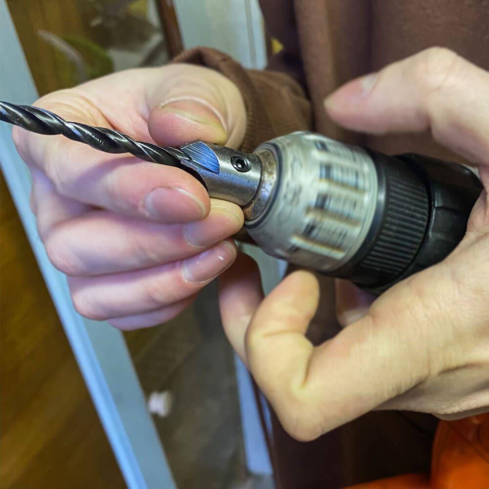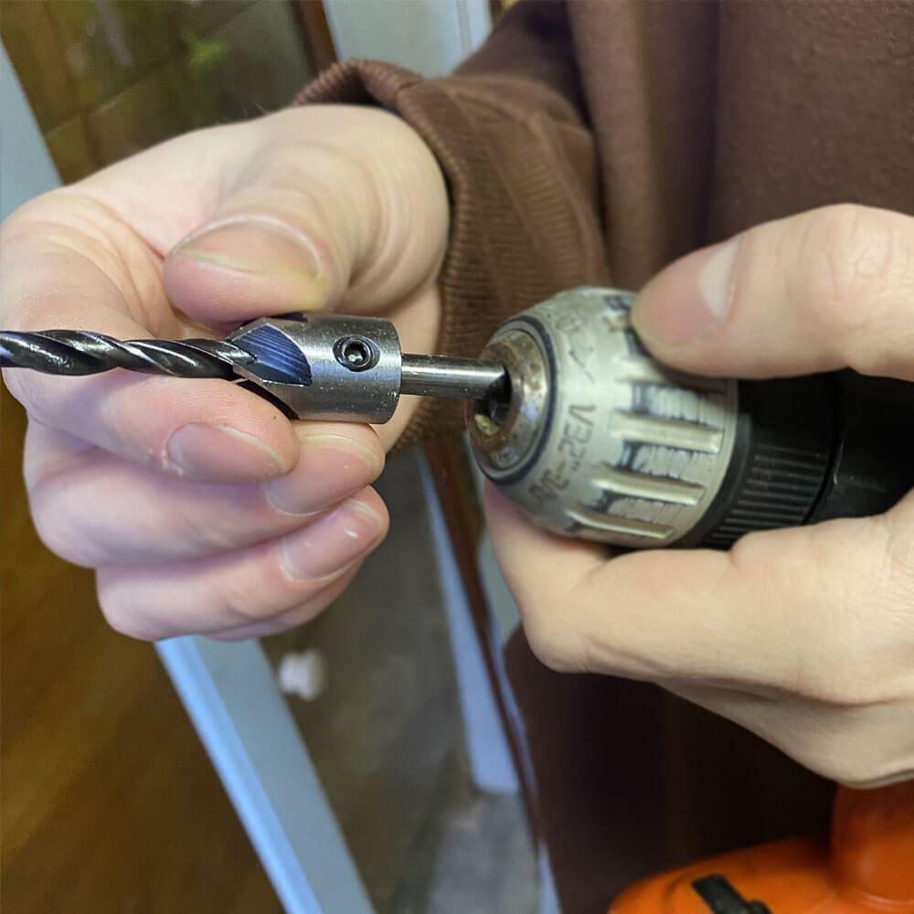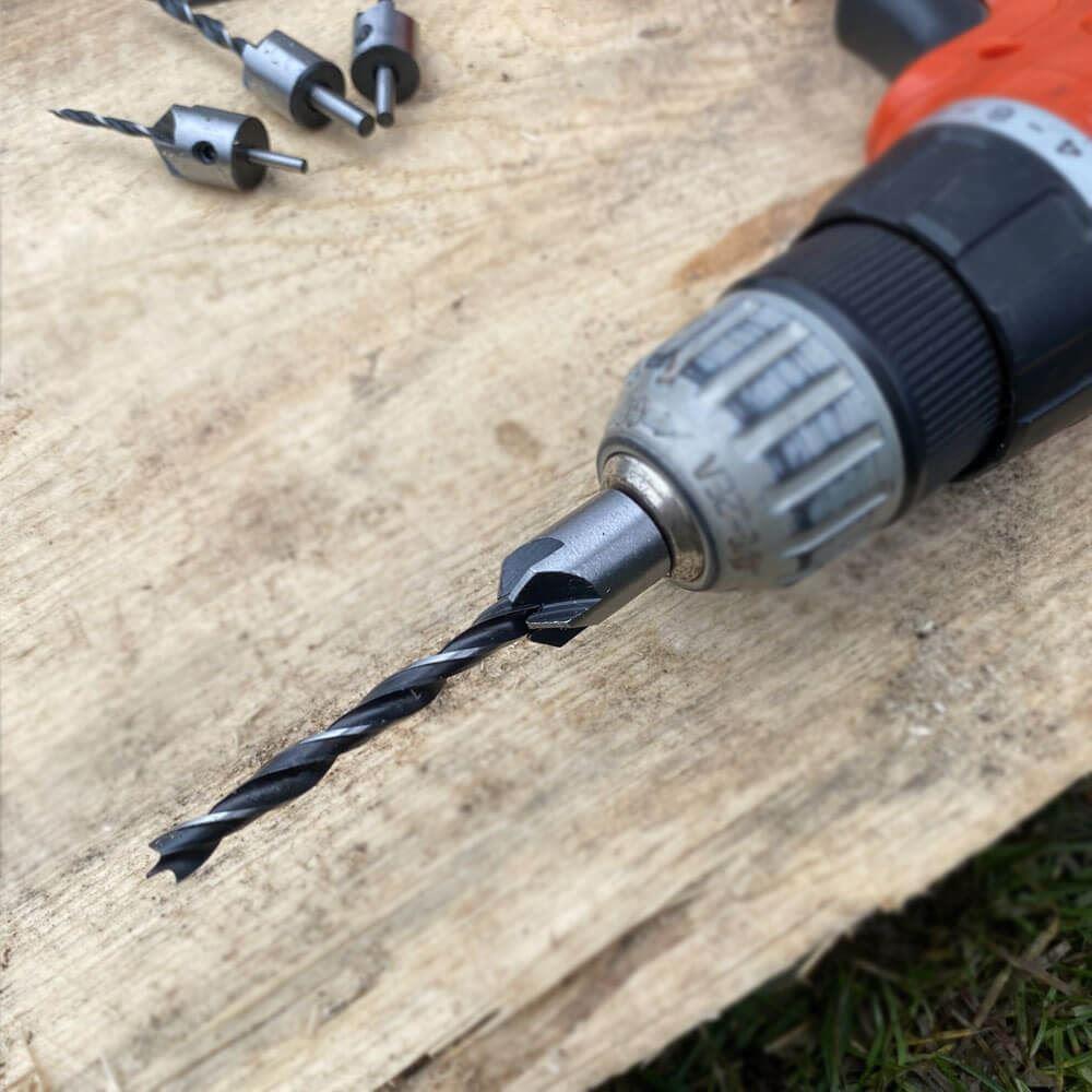A fúrás mélysége egy csavarkulccsal állítható. A készlet 4 darab fúrószárat tartalmaz süllyesztékkel, 6, 5, 4 és 3 mm átmérővel.