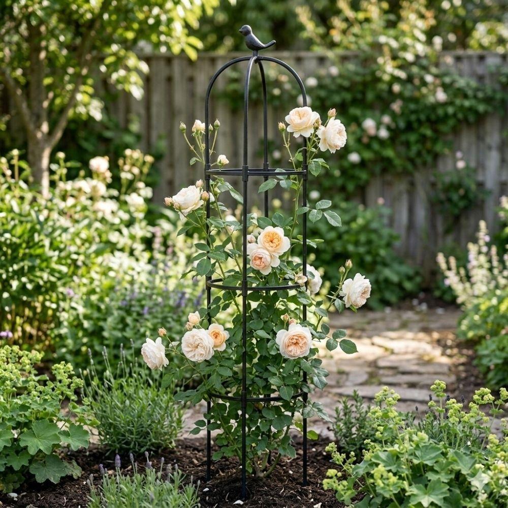 Stabil támasz kúszónövények számára, amely segíti virágait a felfelé növekedésben.