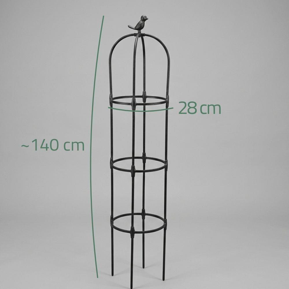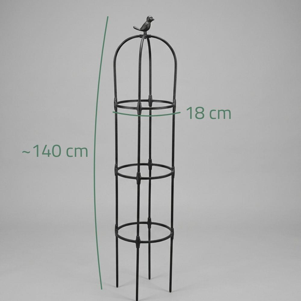 A körülbelül 140 cm magas futónövény-támasz praktikus segítőtárs minden kertész számára. A szerkezet stabil támaszt nyújt a növények növekedése során, segítve őket a felfelé irányított növekedésben. Ennek köszönhetően a növények jobban fejlődnek, nem törnek meg, és rendezett, dekoratív megjelenést biztosítanak az ágyásnak vagy a kertnek.