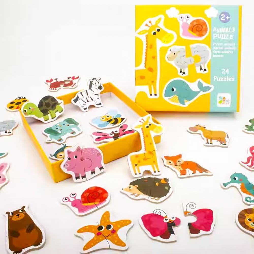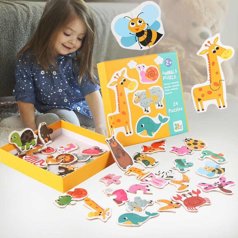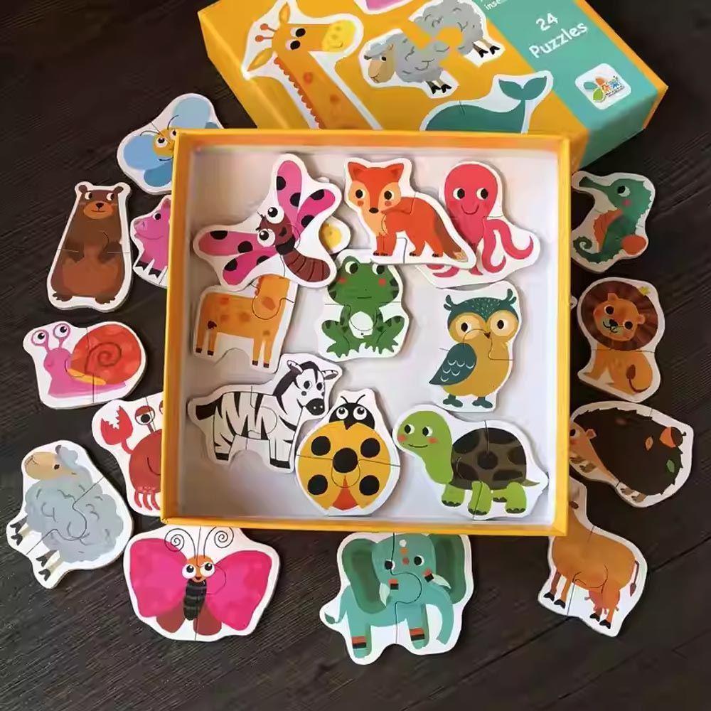 Szórakozás és tanulás egyszerre. A gyerekeket biztosan lenyűgözi az állatkák bájos megjelenése. Az összeállításuk pedig egyáltalán nem bonyolult – minden állatka csak 2 darabból áll össze. Összesen 24-féle egzotikus, tengeri és háziállatot lehet kirakni. A puzzle kiválóan alkalmas különféle állati barátaink felismerésének gyakorlására, akik közöttünk élnek.