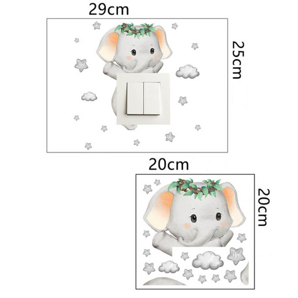 • A matrica mérete felragasztás után: kb. 24 × 28 cm felhőkkel és csillagokkal, 16 × 22 cm csak az elefánt
