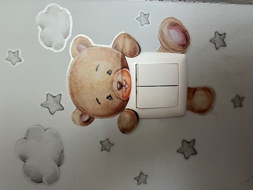 Ha a gyerekeid még mindig elfelejtik lekapcsolni a lámpát, akkor ez a matrica segít nekik. A gyerekek nagyobb valószínűséggel fognak lekapcsolni, amikor kimegynek a szobából, ha egy játékos medve matrica köti le a figyelmüket.