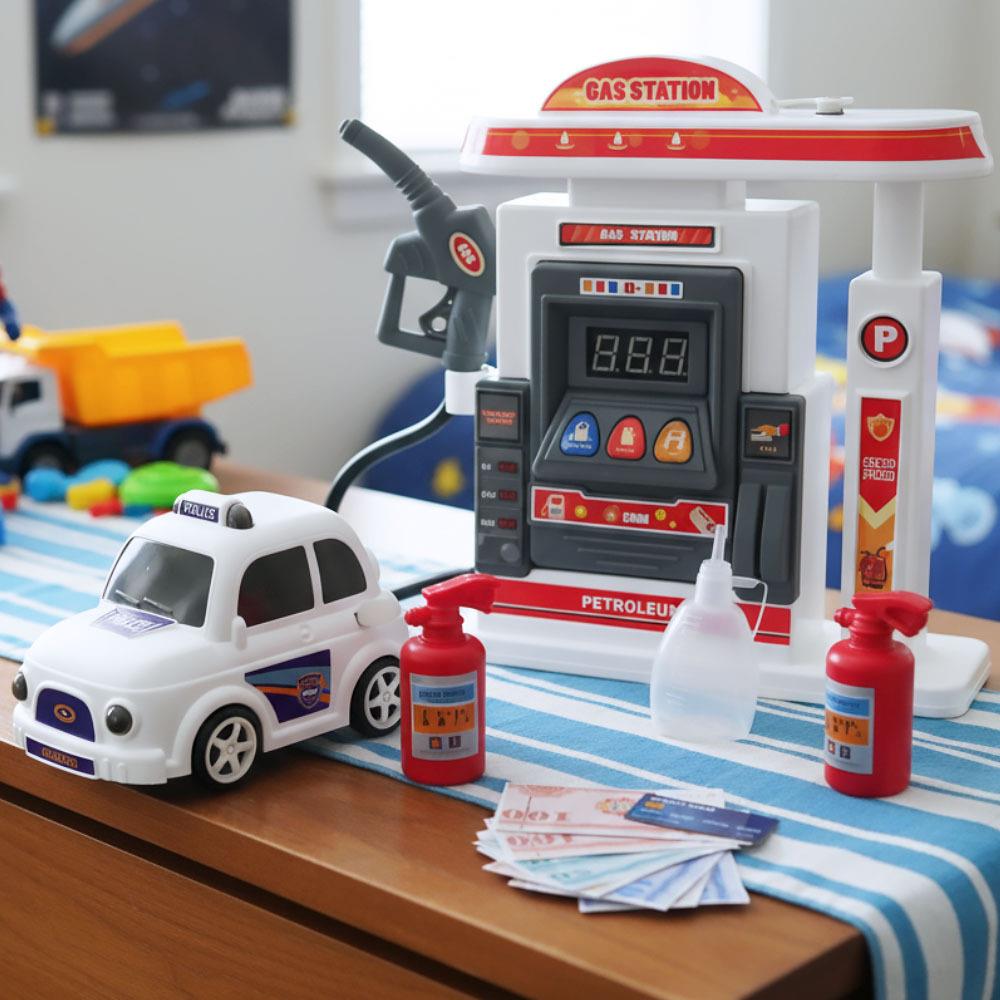 Rendelkezésükre állnak papírpénzek, bankkártya, sőt még egy tűzoltókészülék is – mintha csak egy valódi benzinkúton lennének. A megtankolt autó ráadásul feltöltés után ködöt bocsát ki a kipufogóból, és akár az akadályokat is képes kikerülni. Ezzel a készlettel rengeteg meglepetés vár a gyerekekre hangok és fények formájában, és ami a legfontosabb, sok-sok óra nagyszerű szórakozás!