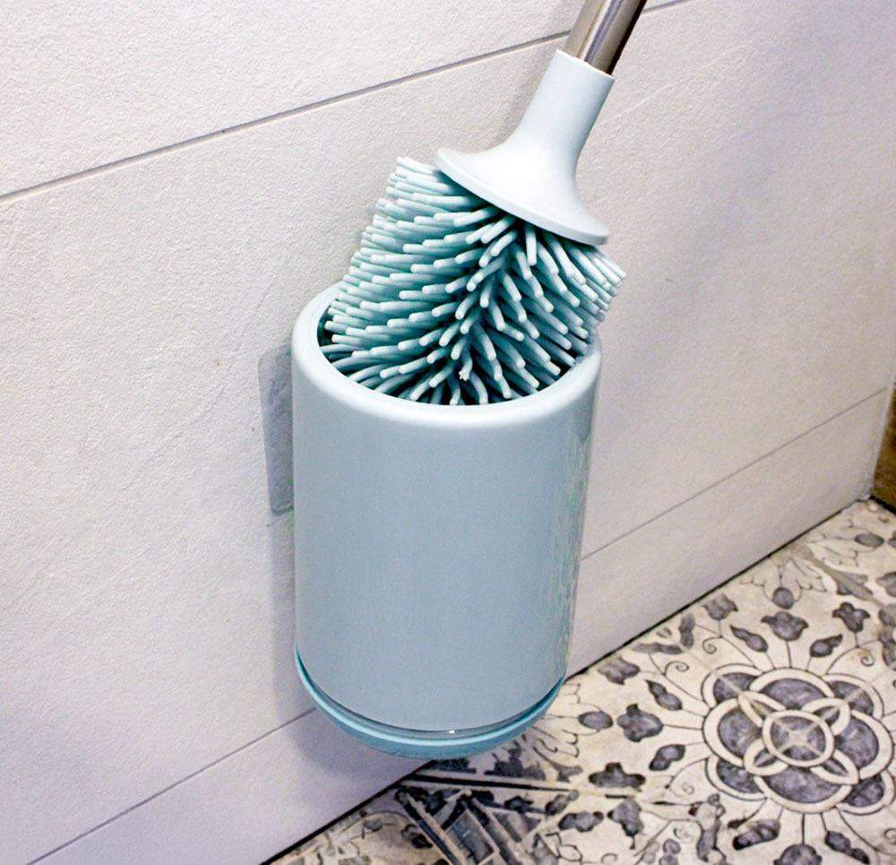 Van egy forradalmi WC-kefénk az ön számára! A gumis anyagnak köszönhetően tökéletesen megszabadul minden szennyeződéstől. Nem telepszik meg rajta a penész, és a baktériumok sem szaporodnak el rajta, mivel könnyen tisztítható és gyorsan szárad. A tartót öntapadós matricával rögzítheti a csempékre.