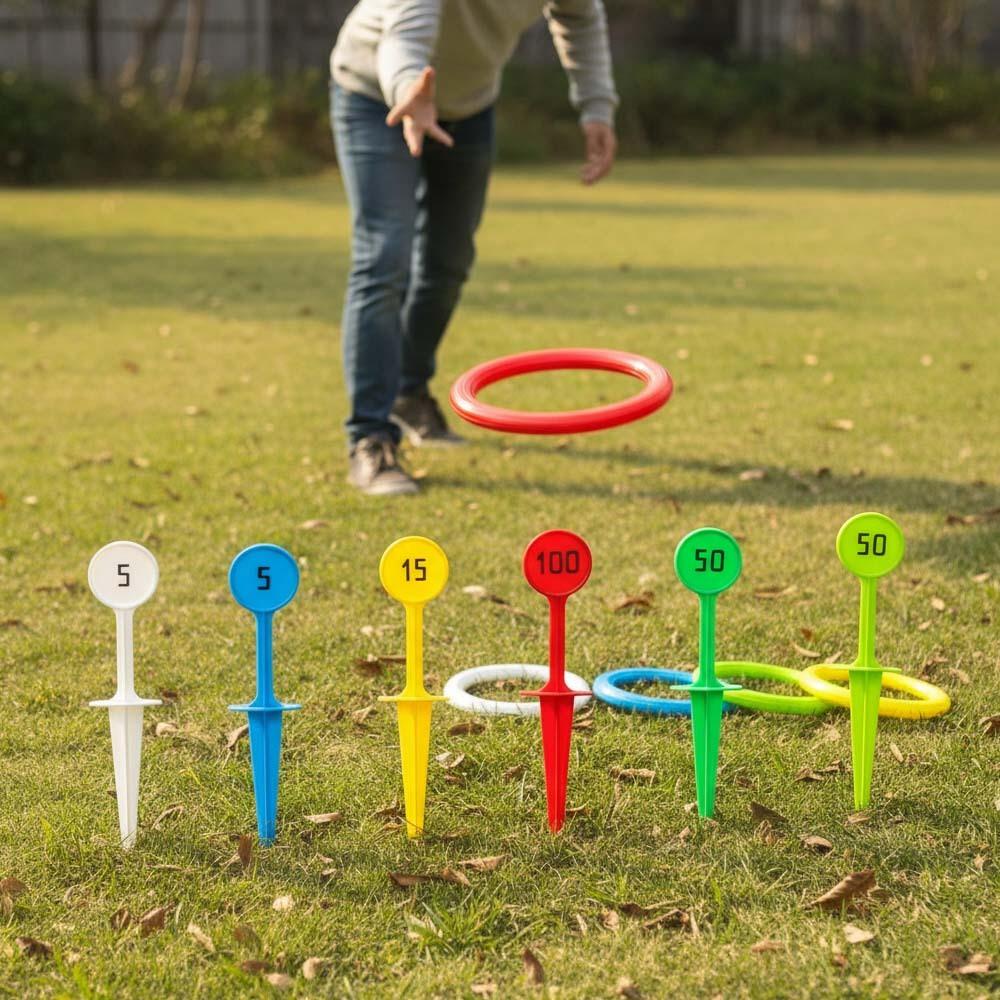Egyszerű játékot keres, amely nemcsak örömet szerez, de kicsalogatja Önt a szabadba is? A karikadobálás földbe szúrt pálcikákra remek választás, ha szeretne kikapcsolódni, jól szórakozni és időt tölteni másokkal. Elég, ha a pálcákat a földbe szúrja, kézbe veszi a karikákat, és indulhat is a játék. Minden dobás új kihívást jelent és ösztönöz a további próbálkozásra, így újra és újra kedve lesz játszani. Tökéletes választás kertbe, kirándulásokra vagy baráti összejövetelekre, ahol laza, játékos hangulatot szeretne teremteni.