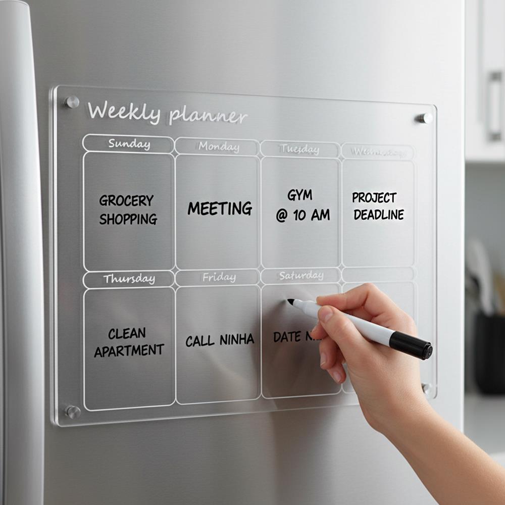 A mágneses heti tervező tökéletes segítőtárs mindenkinek, aki szeretné átlátni feladatait. A hét felosztott napjainak köszönhetően és egy extra jegyzetelési mezővel könnyedén megtervezheti az egész hetét. Tökéletes gyermekes családoknak, diákoknak és dolgozóknak, akiknek világos szervezésre van szükségük. Ráadásul a mágneses felülete szilárdan tartja a hűtőszekrényen, és minimalist design-ja minden konyhába illik. Segít a feladatok, találkozók és sporttevékenységek beosztásában. Nincsenek már kaotikus papírfecnik és elfeledett jegyzetek. Ezzel a tervezővel a hete teljesen kontroll alatt lesz!