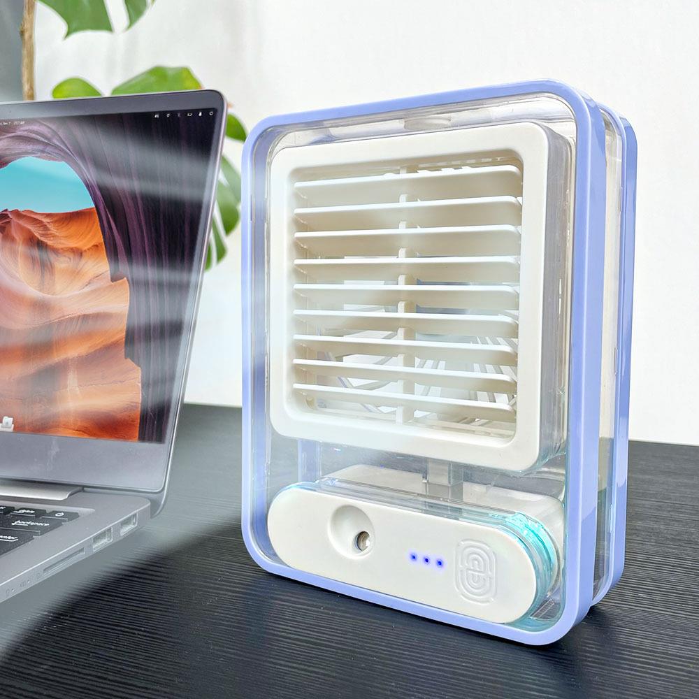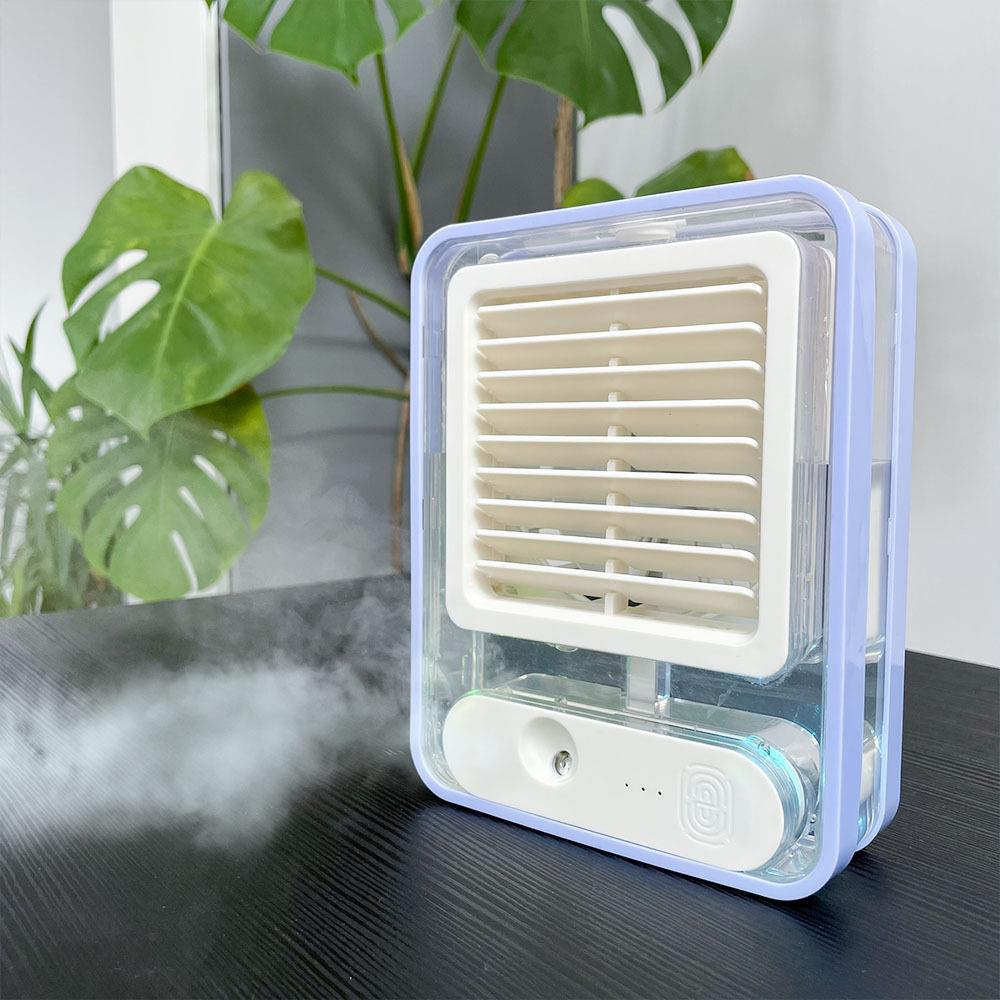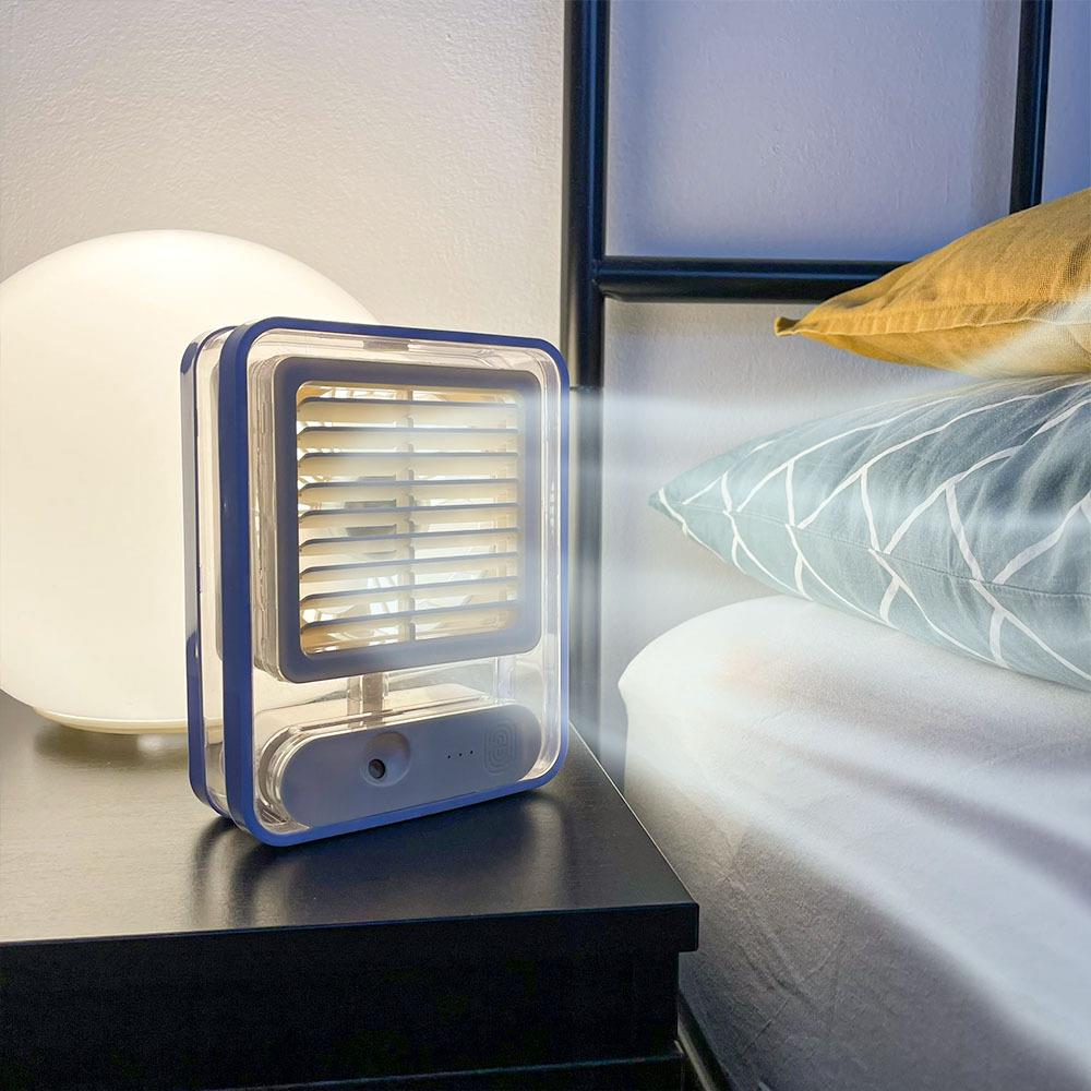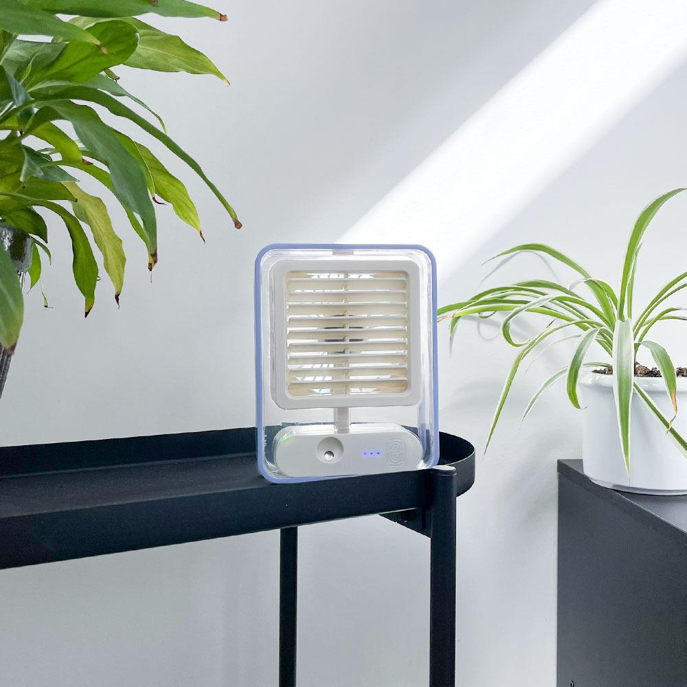 Élvezze a tökéletes felfrissülést ezzel a hordozható asztali légfrissítővel, amely egyesíti a ventilátort, a hűtőködöt és az LED háttérvilágítást egyetlen készülékben! A ventilátor három fokozatának segítségével könnyen beállíthatja az ideális légáramlást, miközben a hűsítő köd kellemesen nedvesíti a levegőt. Nyáron frissítő szellővel hűt le, télen pedig illóolajokkal kellemes illatot és relaxáló légkört teremthet.