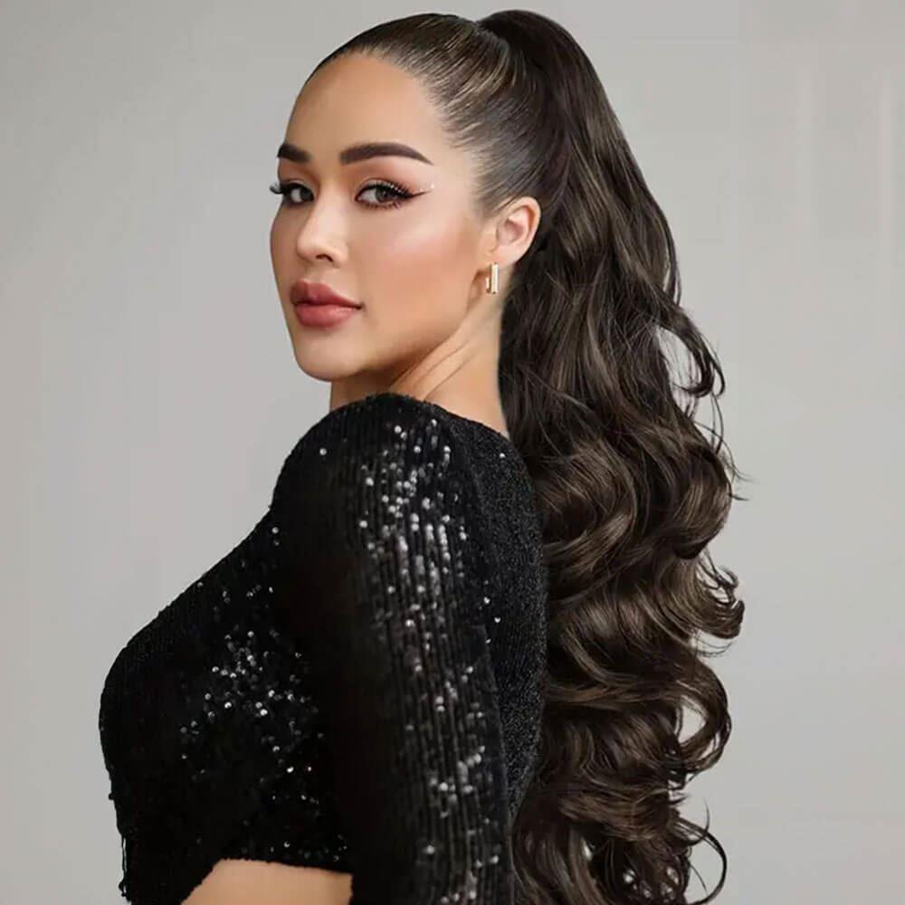 Ez a hullámos póthaj – copf néhány másodperc alatt lenyűgöző volument és hosszúságot kölcsönöz Önnek. Egyszerűen csak rögzítse hajához egy csattal, és máris átalakul a frizurája és megjelenése. A hullámos copf természetes és valósághű hatást kelt. Javasoljuk, hogy alkalmazás előtt enyhén göndörítse be saját haját, hogy az átmenet a lehető legtermészetesebb legyen. Azonnali volument és hosszúságot varázsol, amelyhez egyébként évek kellenének.