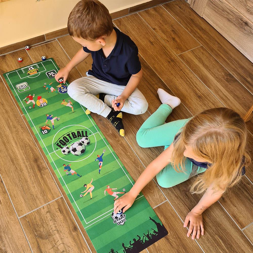 Ez a játékszőnyeg minden szobában adrenalin hangulatot teremt. A gyerekek egyedül vagy barátaikkal próbálgathatják a lövési pontosságot, pontokat gyűjthetnek, és szórakozhatnak egy egyszerű, mégis lebilincselő játék során. Csak terítsd le a szőnyeget, készítsd elő a "korongokat" és célozz a pontozott mezőkre. A szőnyeg puha, könnyen tárolható és hordozható, így magaddal viheted utazásra, nyaralásra, vagy bárhová vendégségbe. Játssz egy curlinghez hasonló játékot gyerekzsúron vagy gyerektáborban. Ki szerzi meg a legtöbb pontot, és kinek lesz a legjobb "találata"?