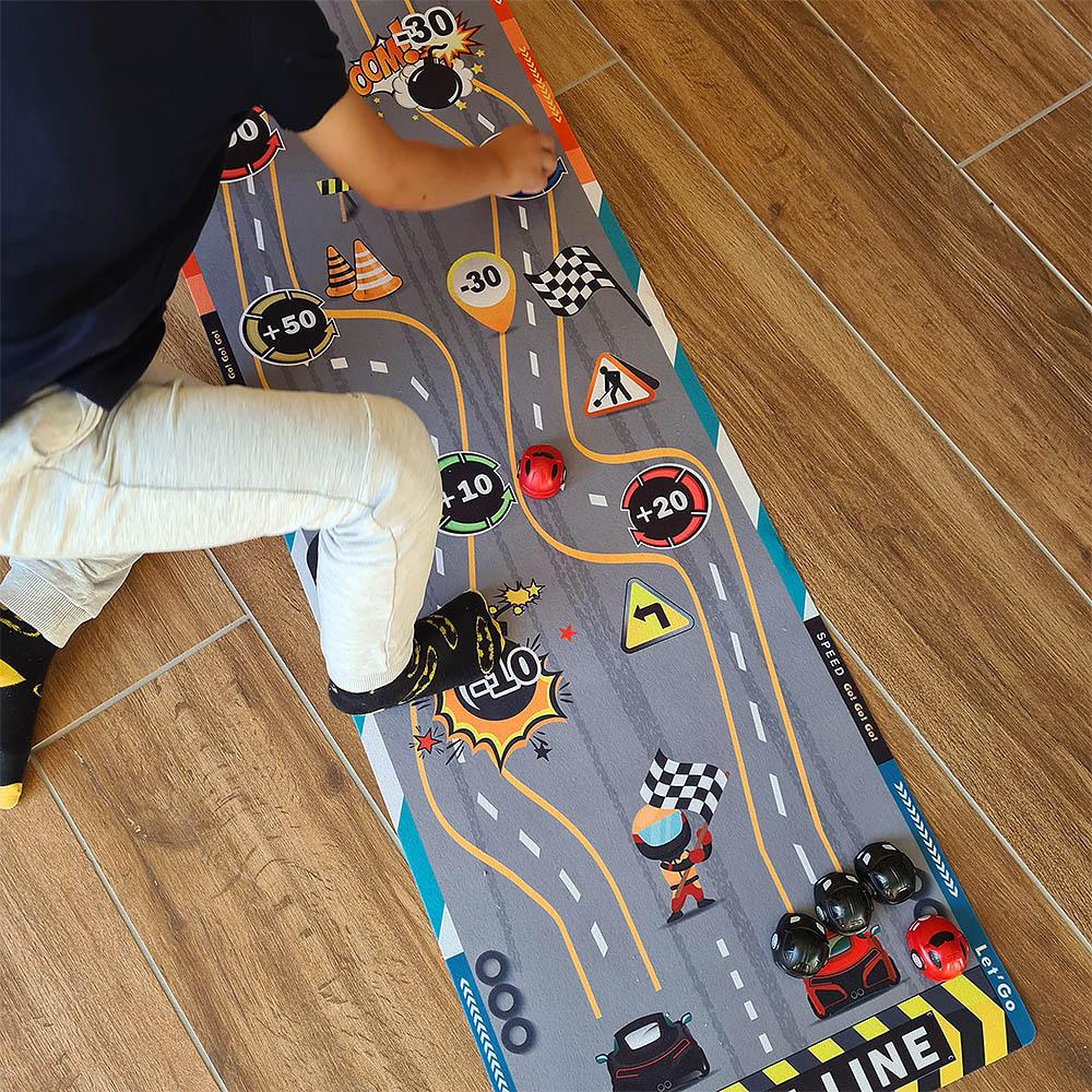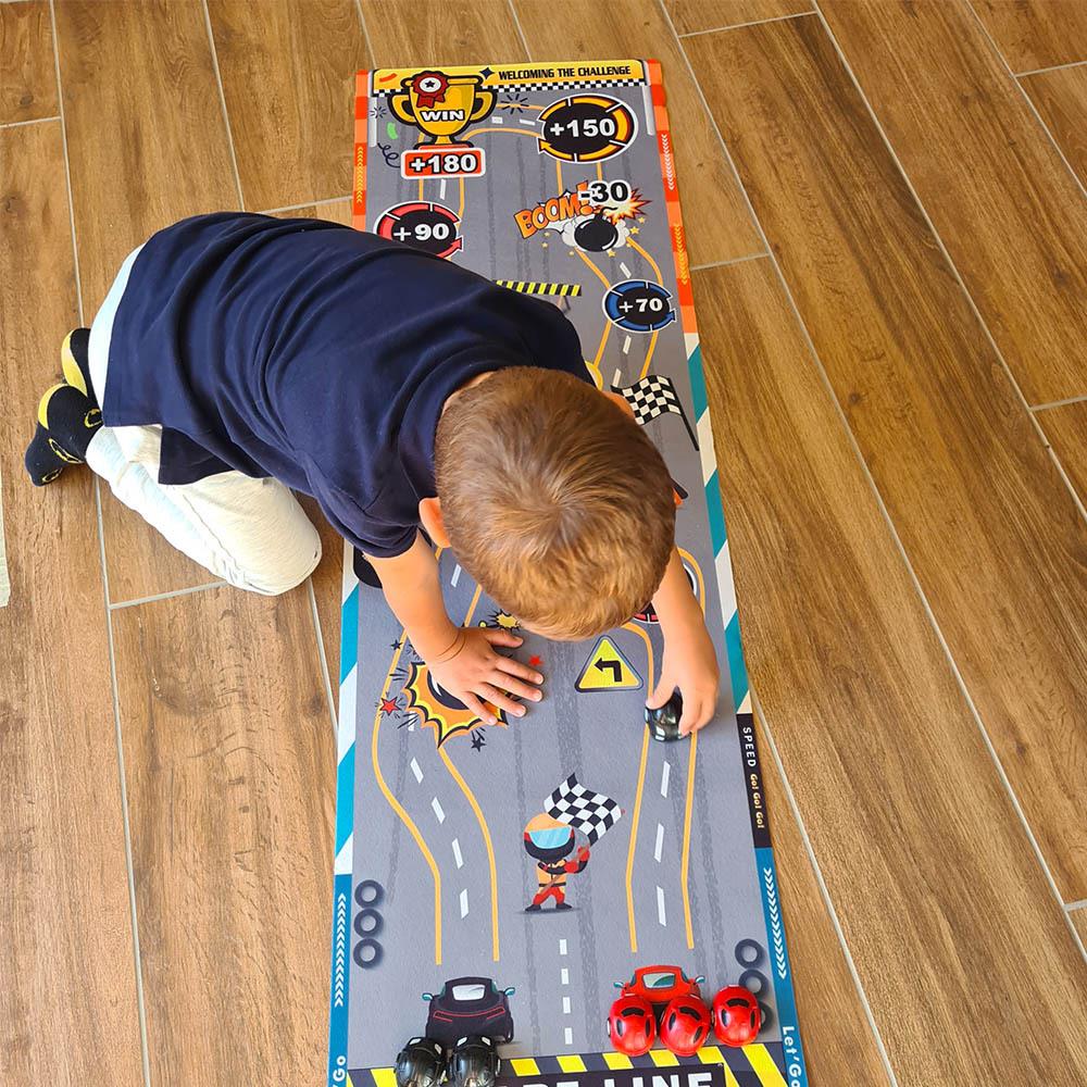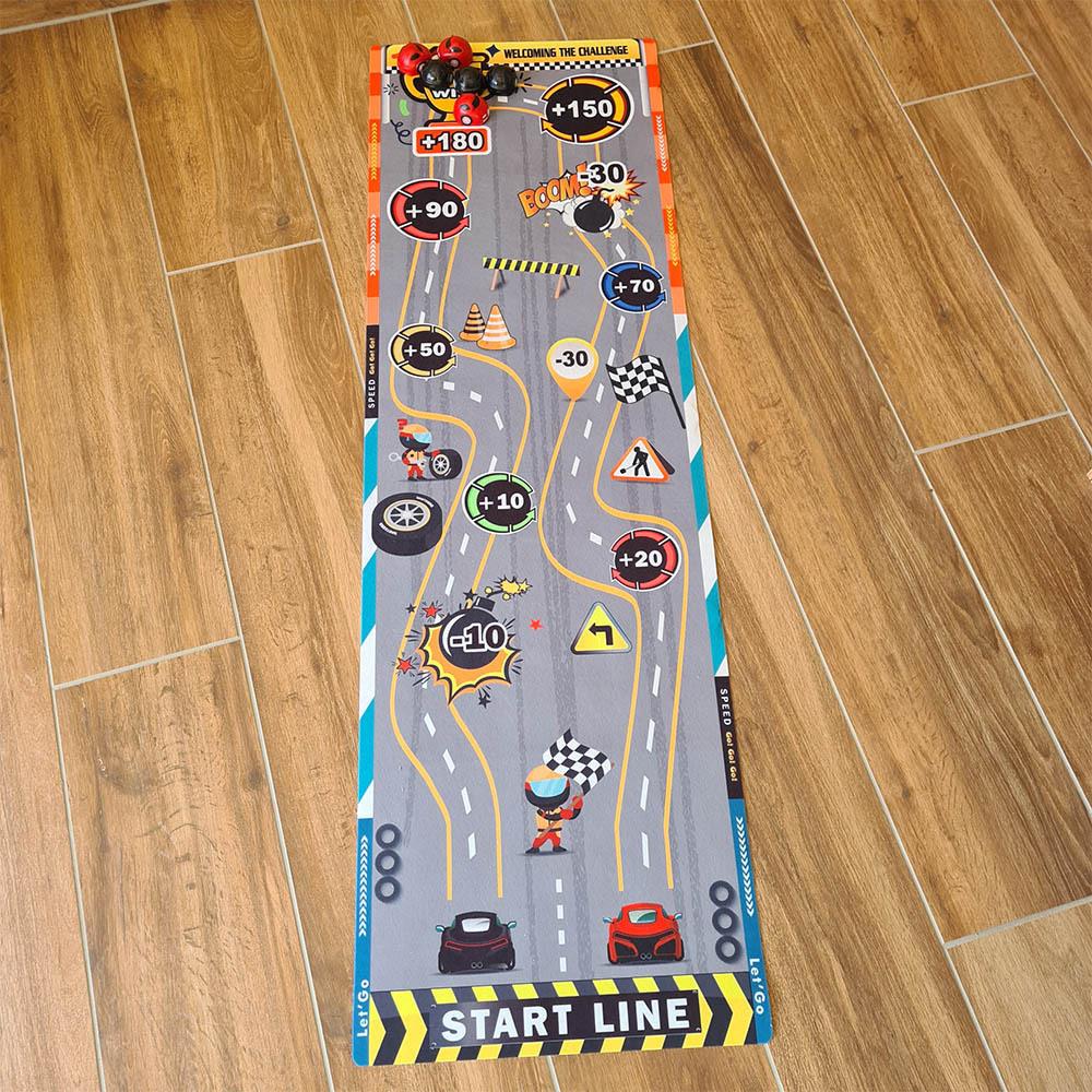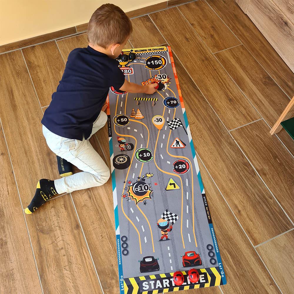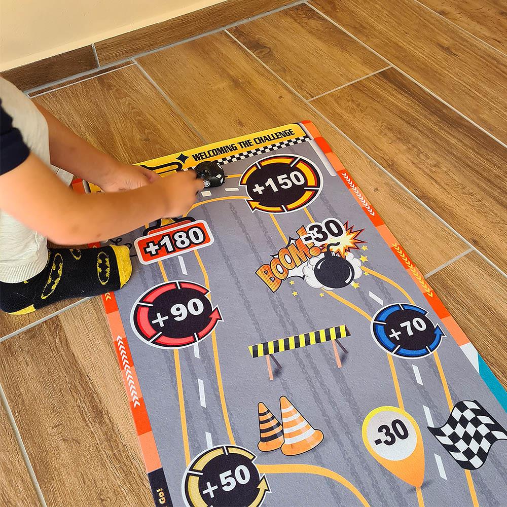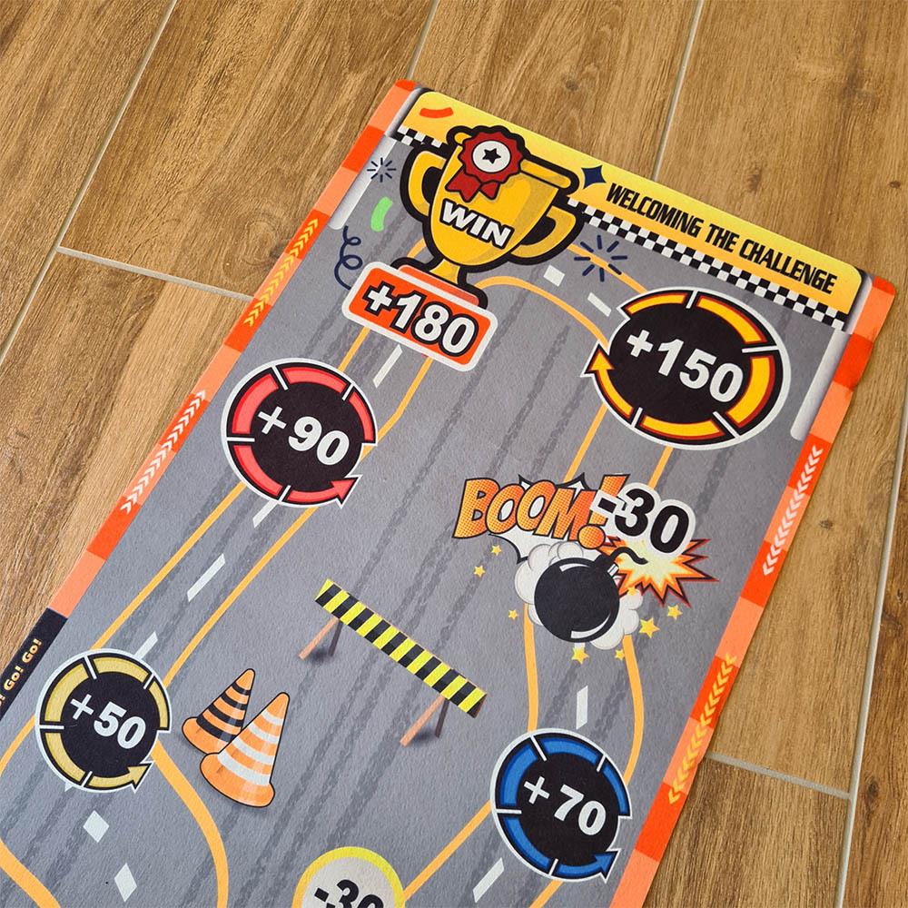 Ez a játékszőnyeg minden szobában adrenalin hangulatot teremt. A gyerekek egyedül vagy barátaikkal próbálgathatják a lövési pontosságot, pontokat gyűjthetnek, és szórakozhatnak egy egyszerű, mégis lebilincselő játék során. Csak terítsd le a szőnyeget, készítsd elő a "korongokat" és célozz a pontozott mezőkre. A szőnyeg puha, könnyen tárolható és hordozható, így magaddal viheted utazásra, nyaralásra, vagy bárhová vendégségbe. Játssz egy curlinghez hasonló játékot gyerekzsúron vagy gyerektáborban. Ki szerzi meg a legtöbb pontot, és kinek lesz a legjobb "találata"?