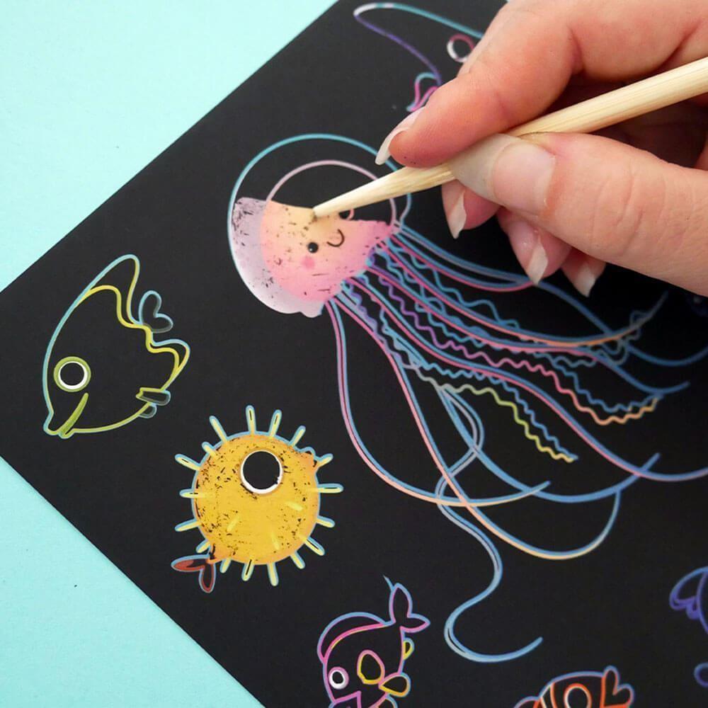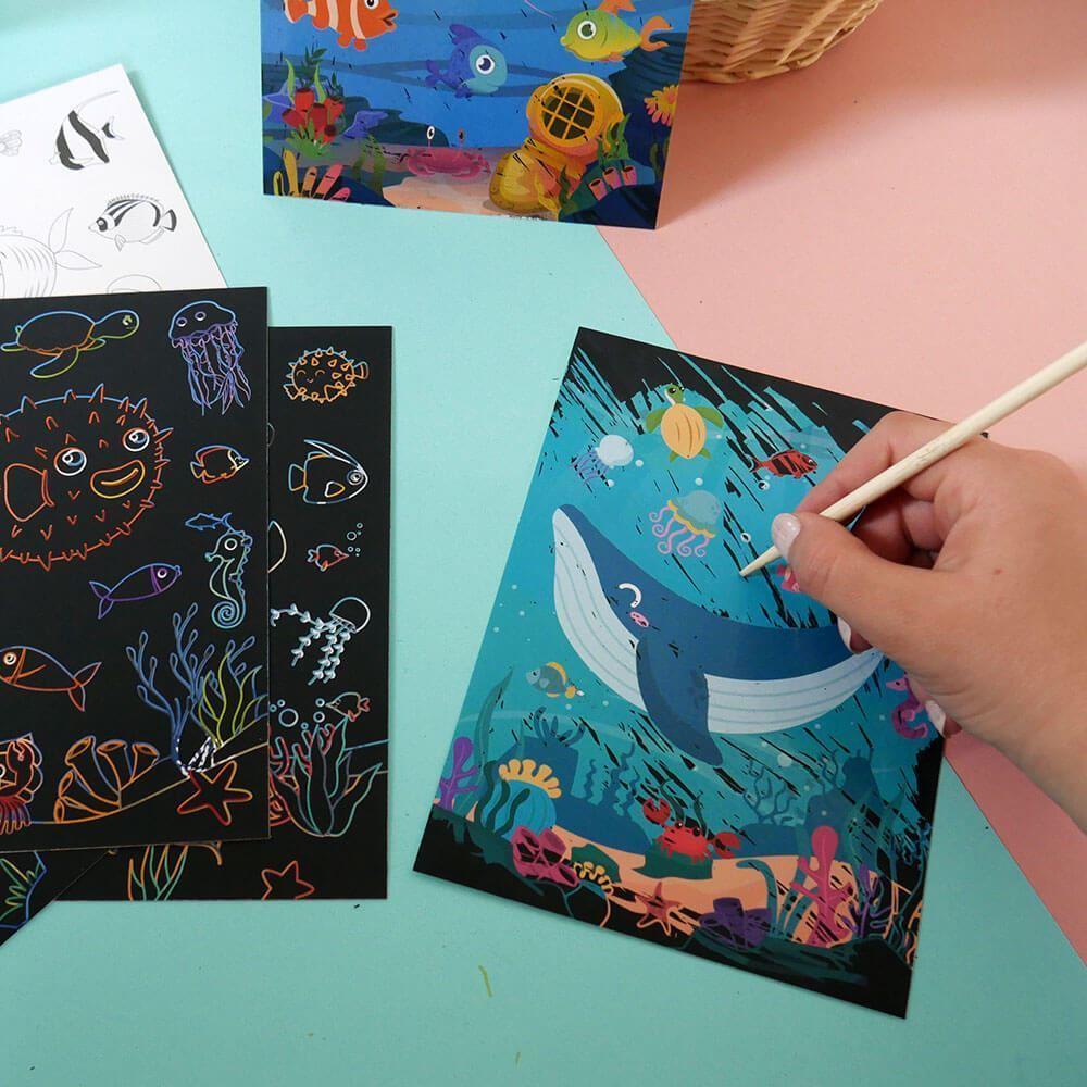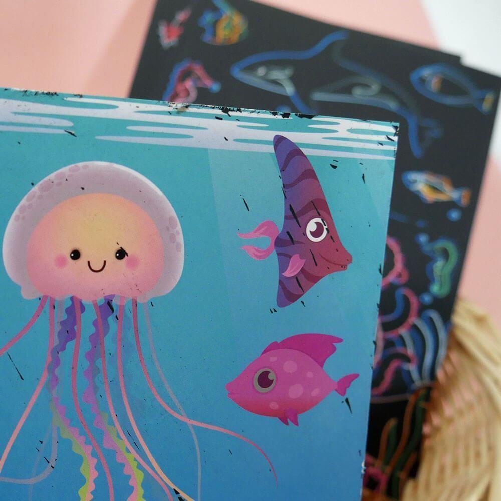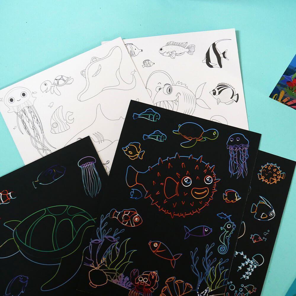 Otthon kis művészetrajongó van? Akkor ezek az eredeti kaparós színezők lesznek a tökéletes ajándék! A kaparós képek a felnőttek körében is népszerű kreatív tevékenységnek számítanak. Ezek kisebb méretben, vidám, gyerekeknek szánt mintákkal készültek. A csomag összesen 9 különböző képes lapot tartalmaz. Ezeket egy speciális tollal lehet lekaparni, amely szintén a csomag része. Kaparás közben a fekete réteg alatt vidám, lágy színek bukkannak elő. A képek kaparása során sem gond, ha a gyerekek kicsúsznak a vonalból.
