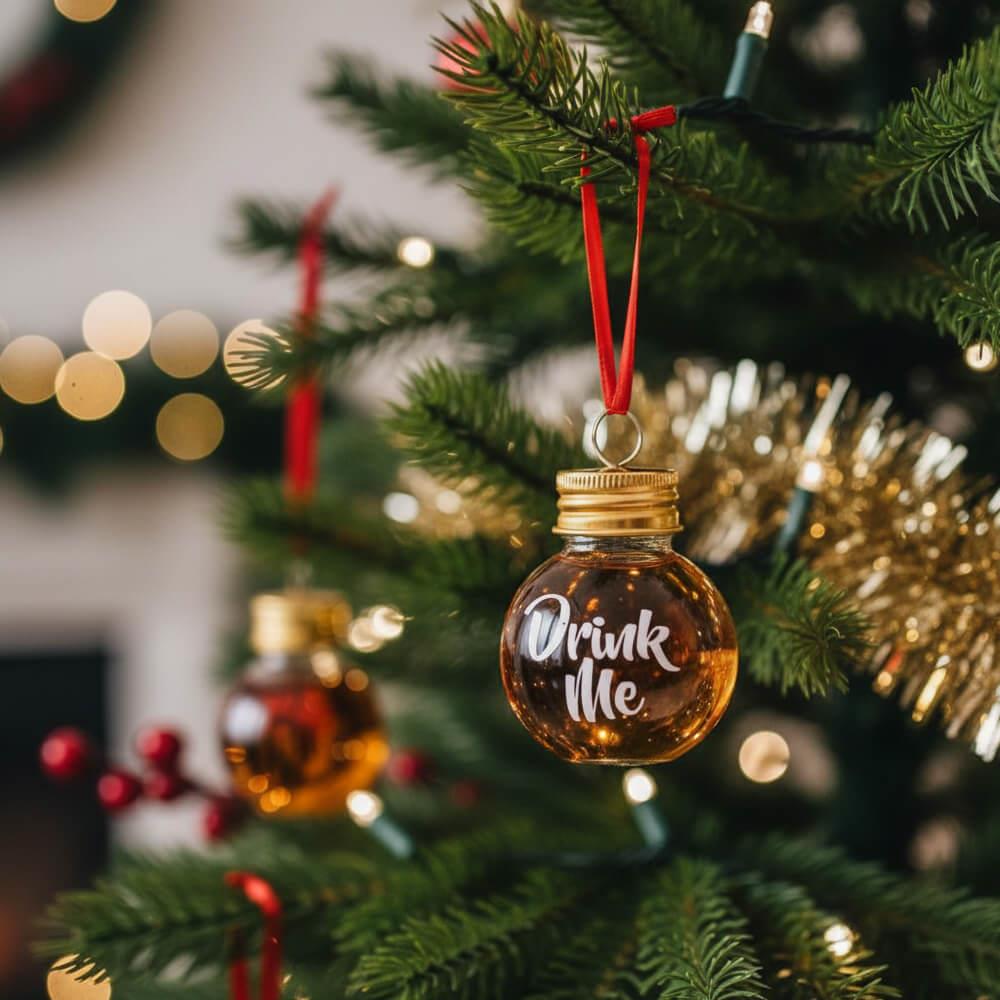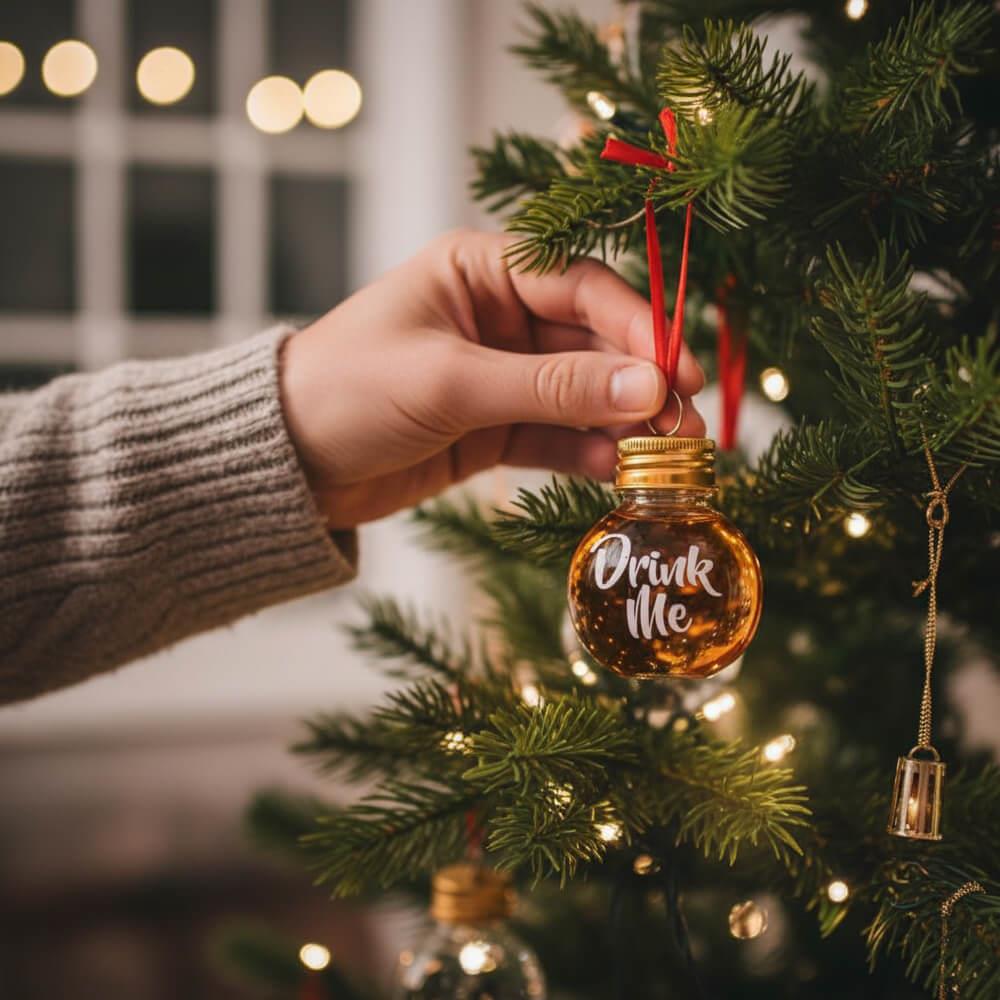 • Vidám karácsonyfadíszek, amelyekbe lehet alkoholt tölteni vagy dekorációkat helyezni